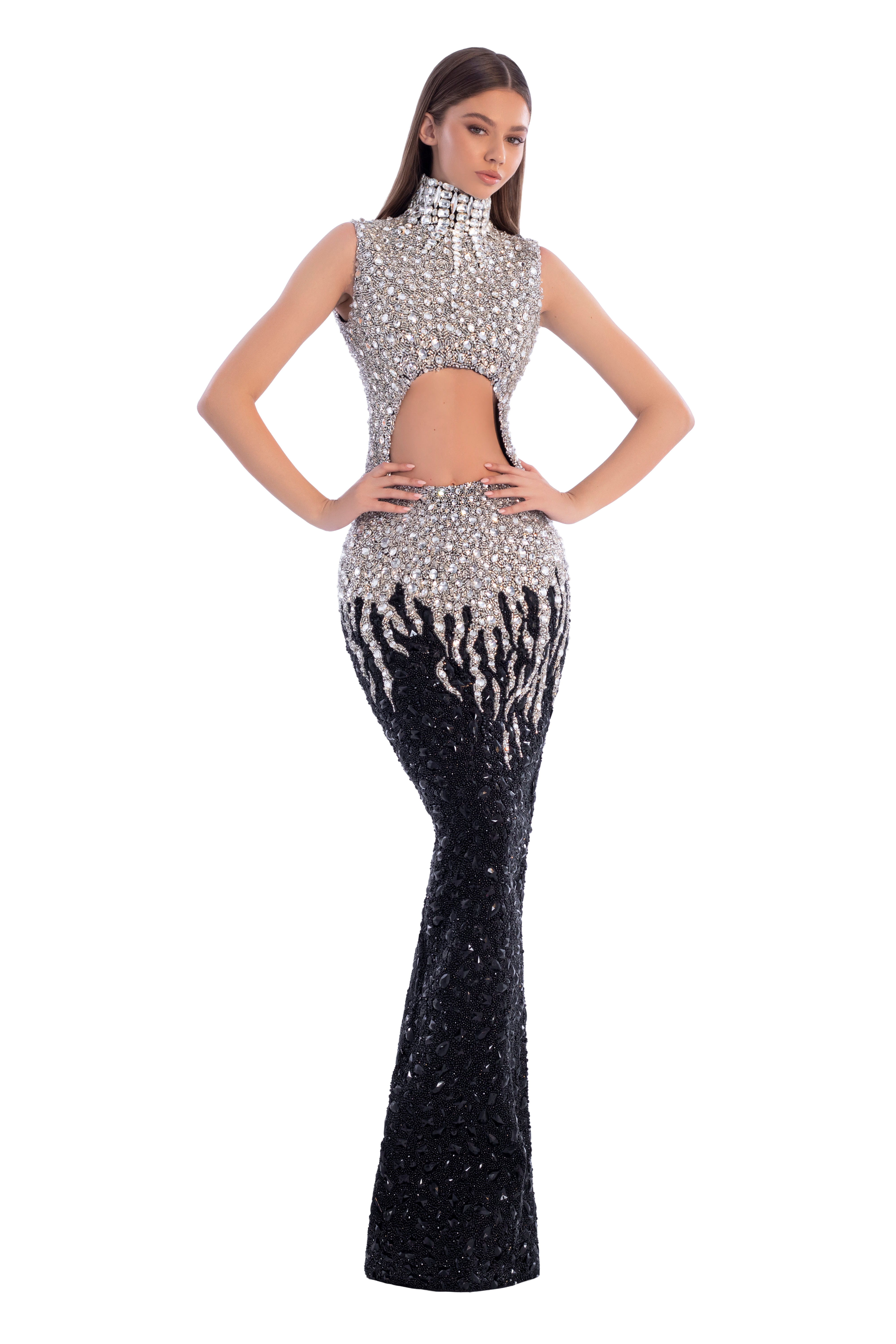 The model’s height: 180/ 70.0, bust: 91 cm/ 35.8, waist: 60 cm/23.6, hips: 101 cm / 37.5.