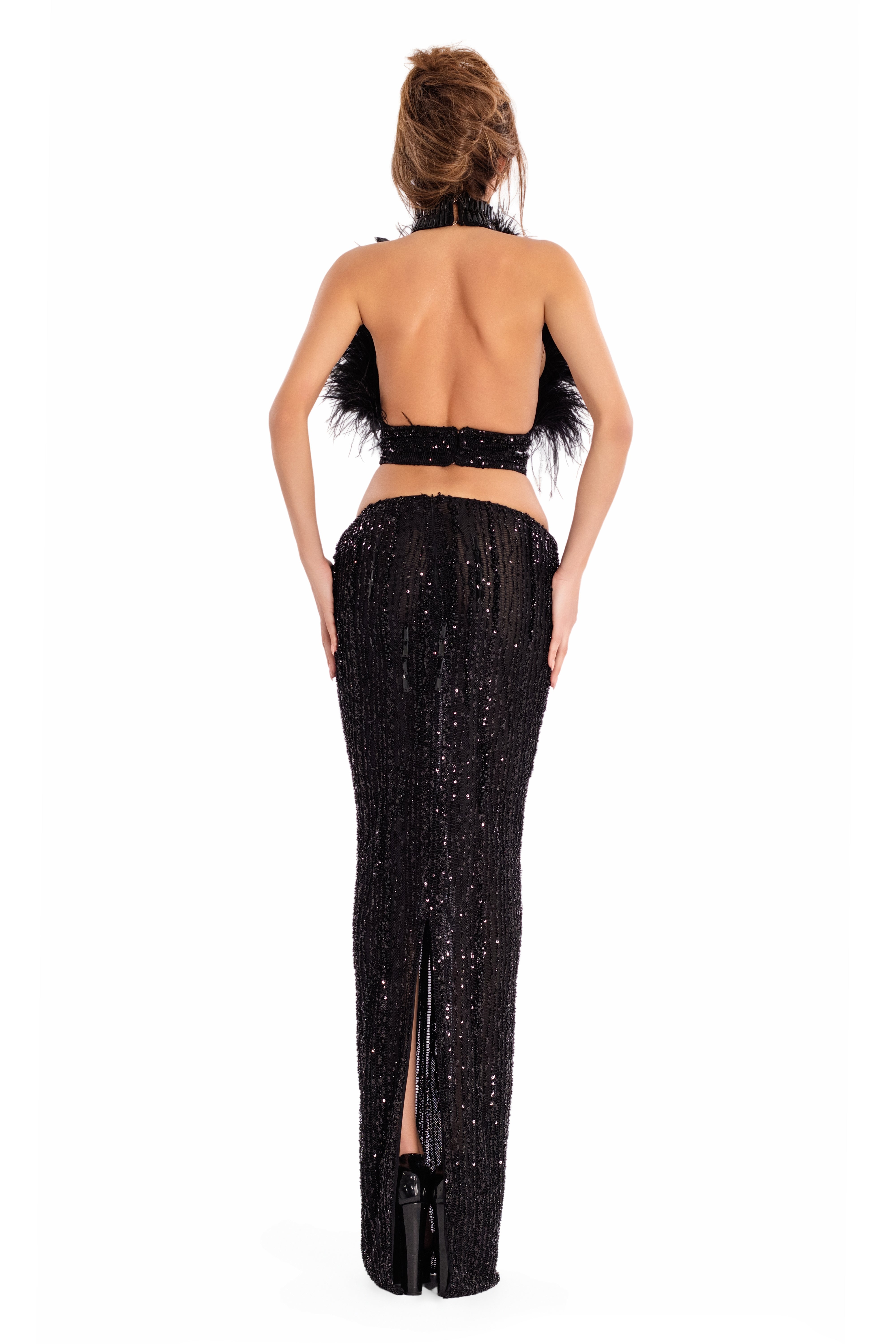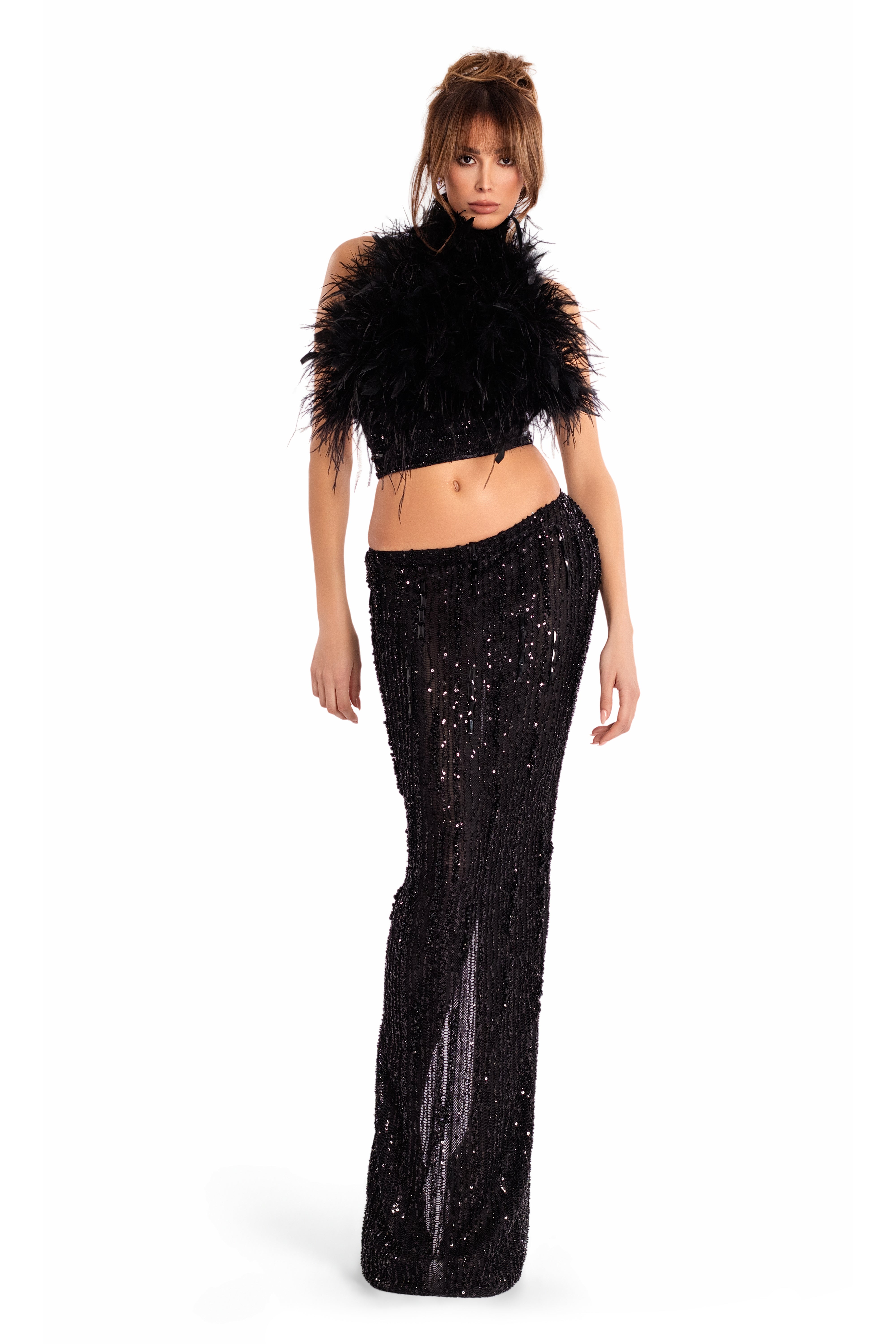 The model’s height: 5'7/170cm, bust: 32'/81cm, waist: 24'4"/62cm, hips: 35'8"/91cm