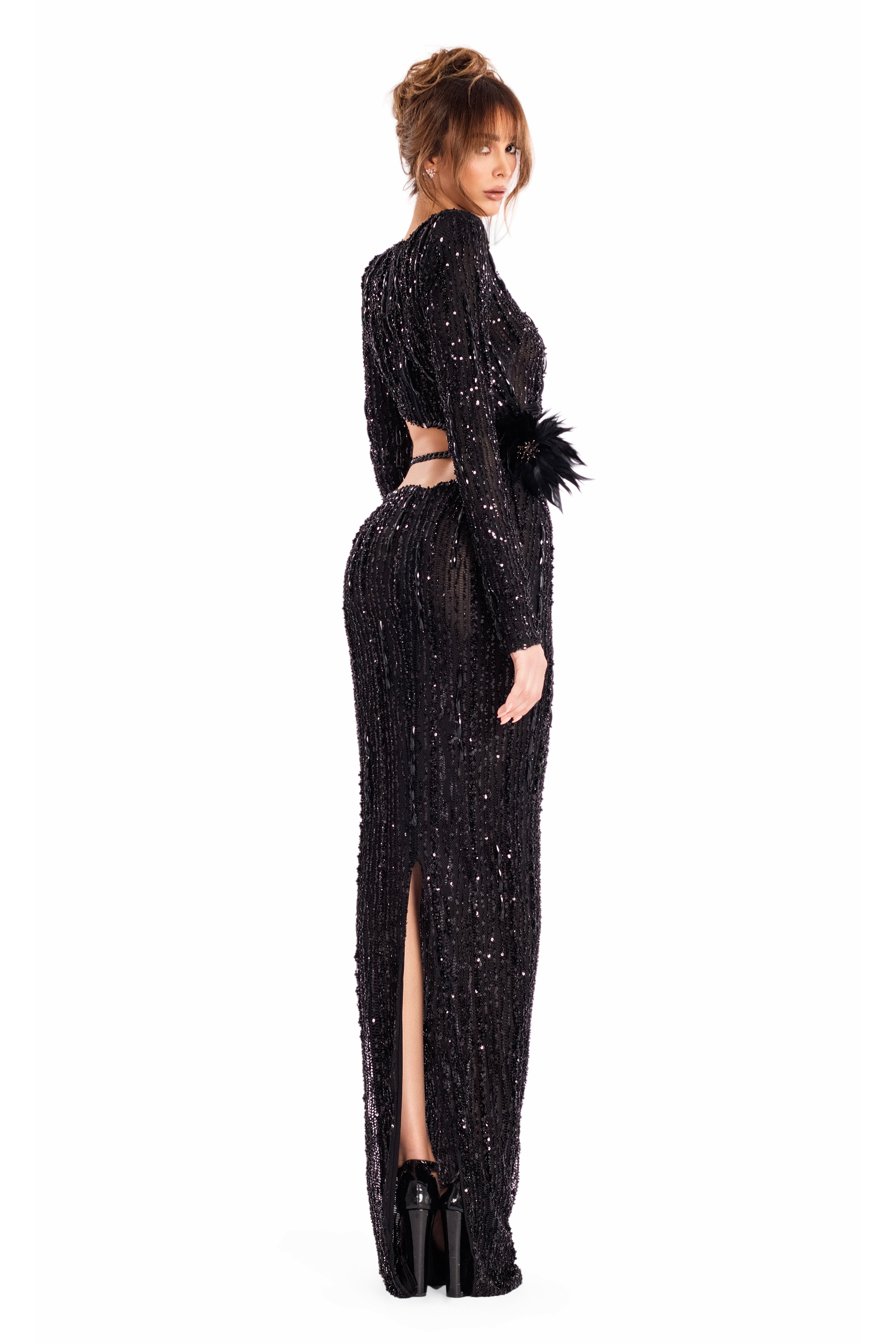 Low-rise maxi skirt with feather detail