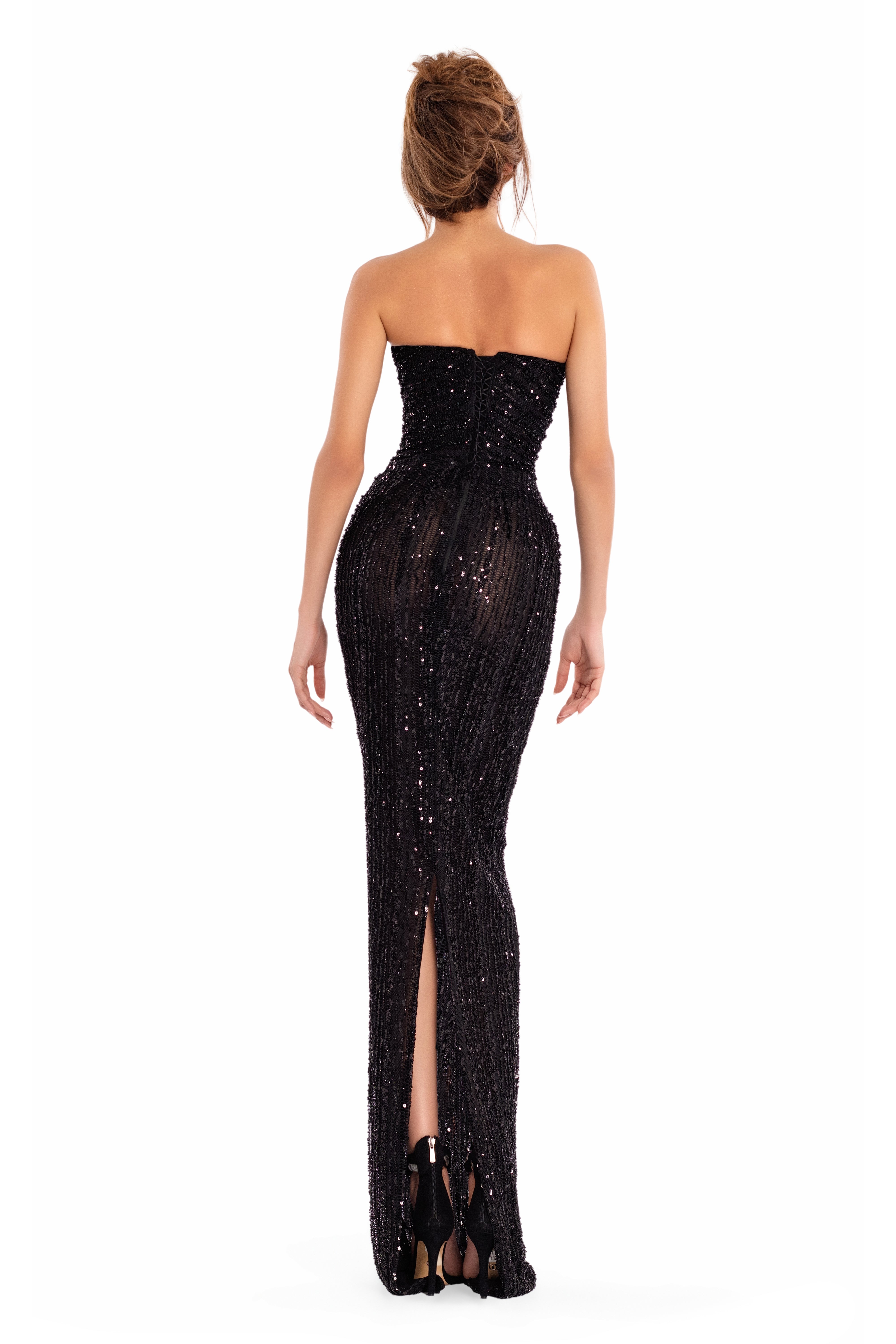 The model’s height: 5'7/170cm, bust: 32'/81cm, waist: 24'4"/62cm, hips: 35'8"/91cm