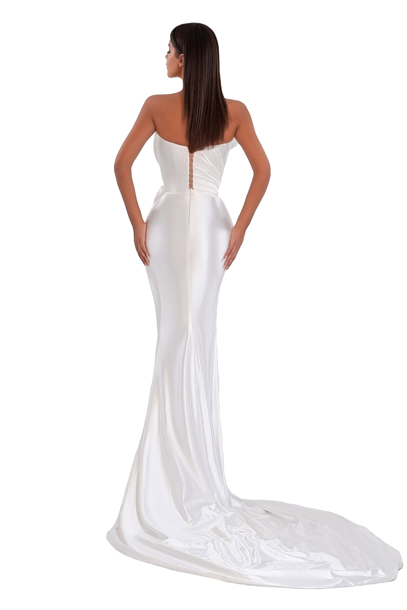 This dress has satin material with glitter, silver beads in corset and long train.