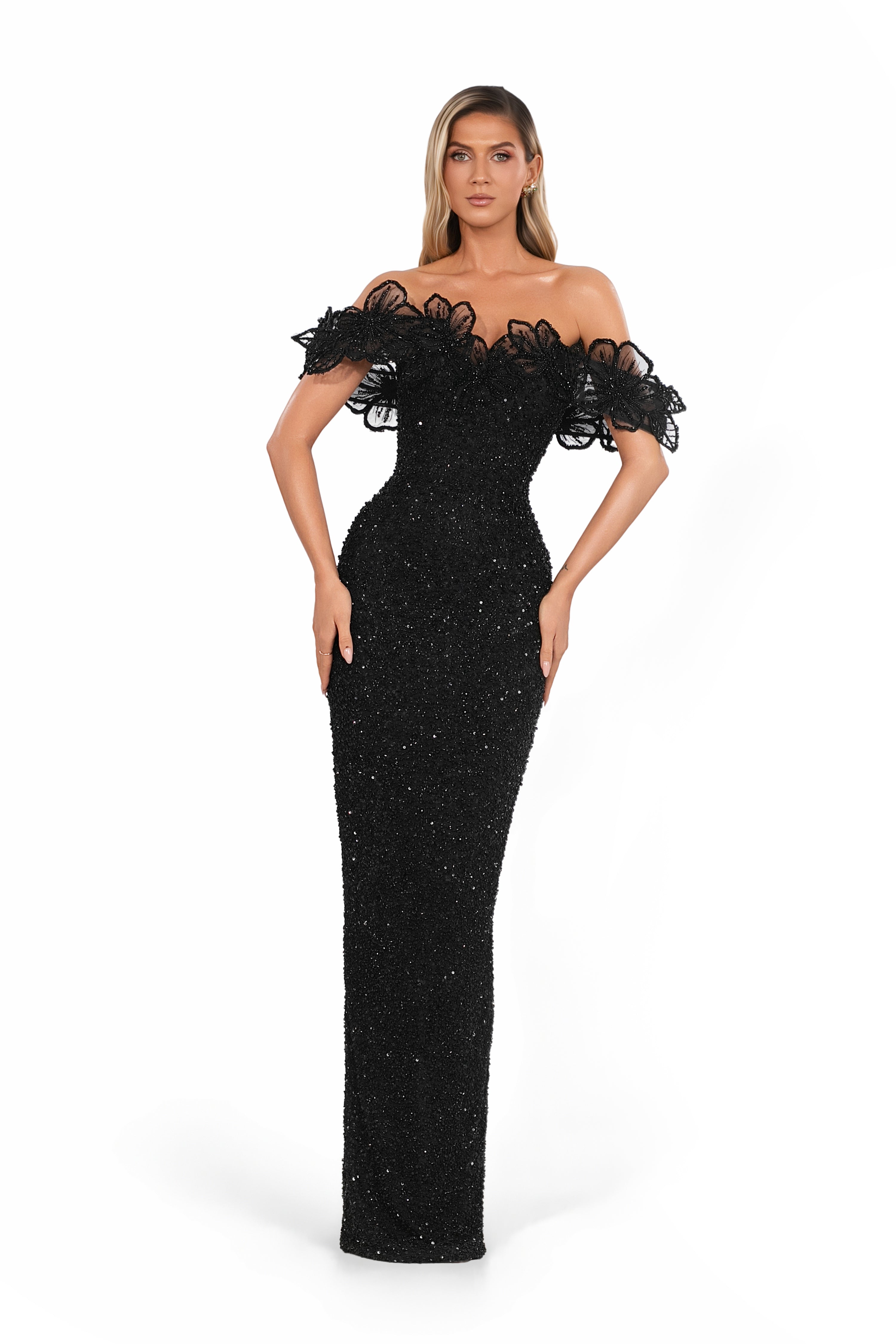 • Beaded full-length silhouette