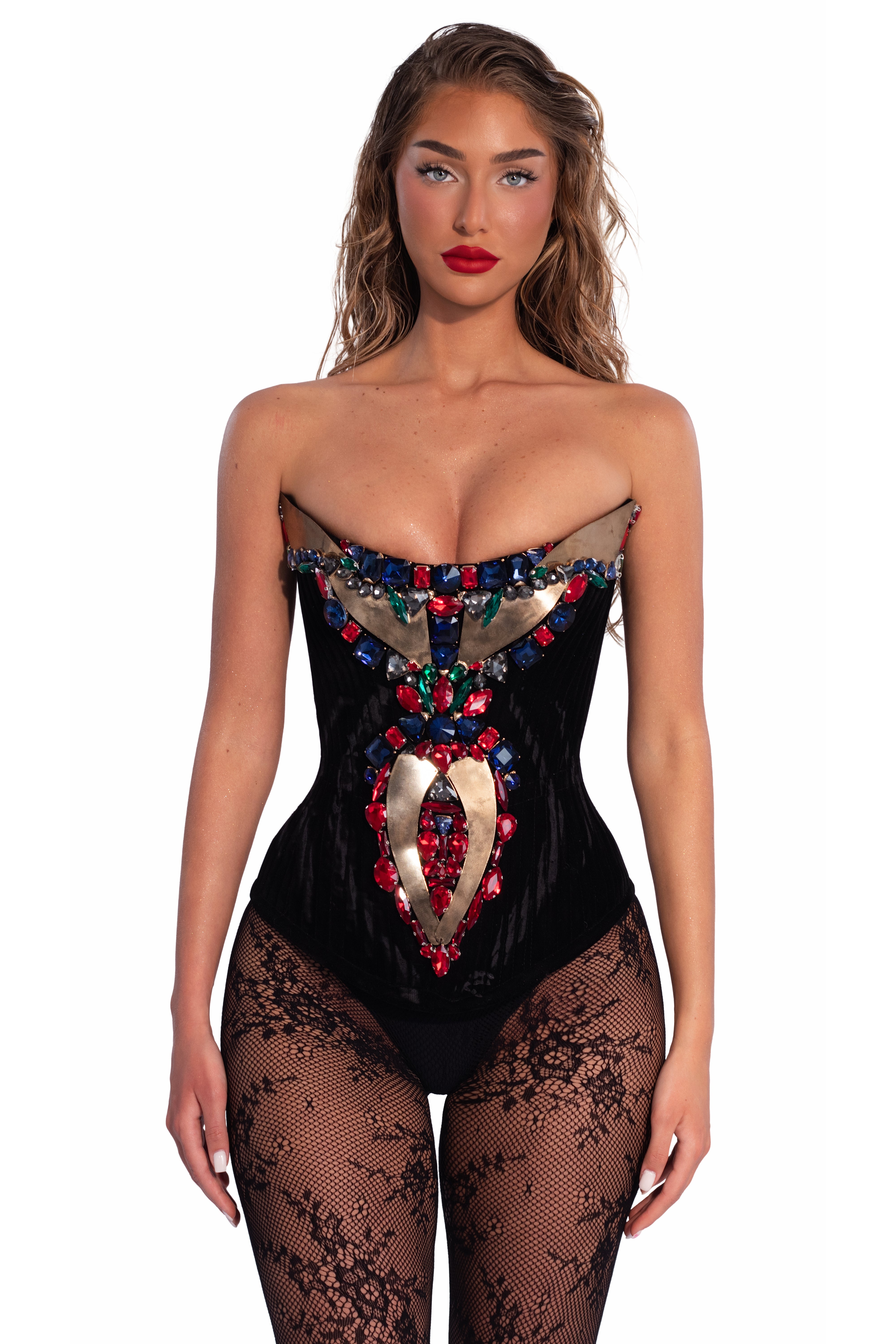 The model’s height: 5'7/170cm, bust: 32'/81cm, waist: 24'4"/62cm, hips: 35'8"/91cm