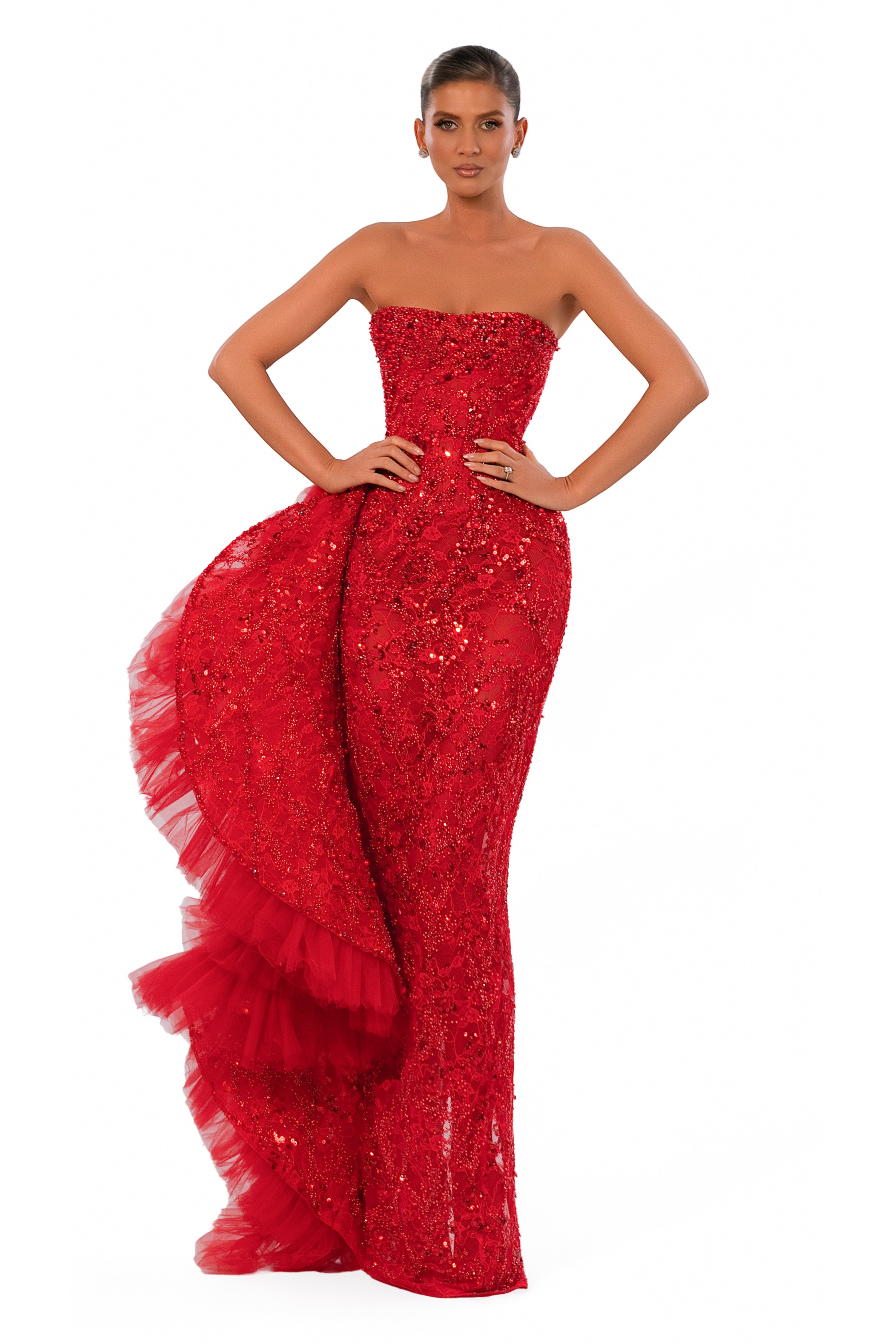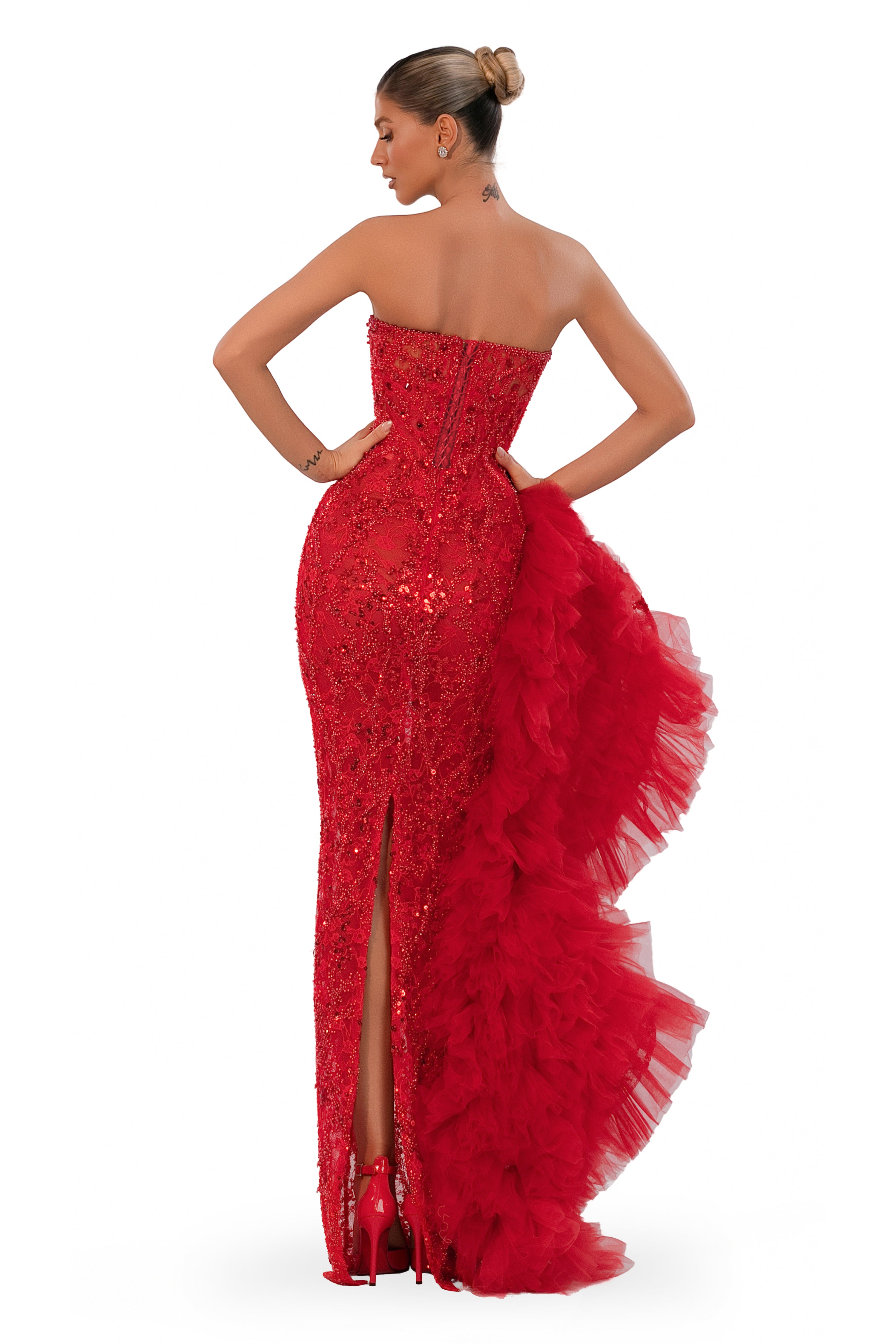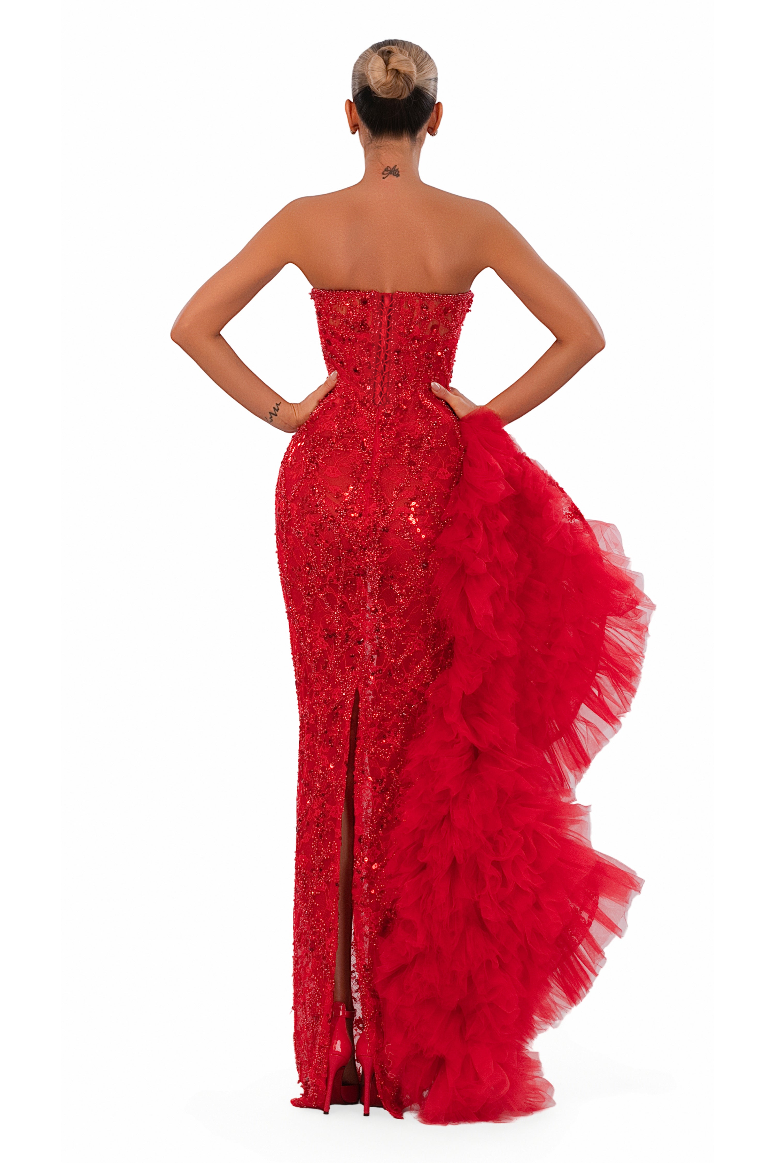 • Strapless beaded bodice