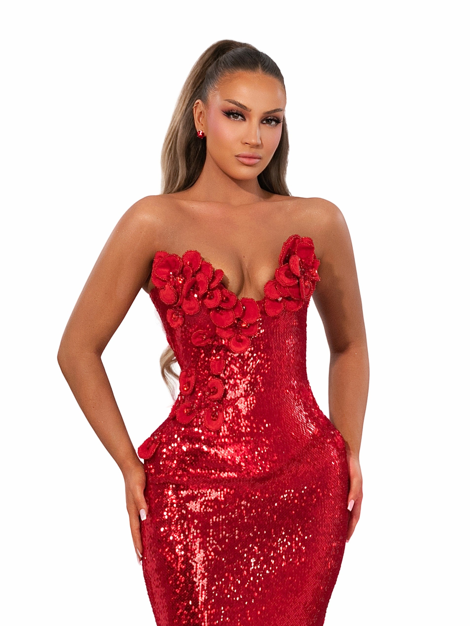 • The model’s height: 5'7/170cm, bust: 32'/81cm, waist: 24'4"/62cm, hips: 35'8"/91cm