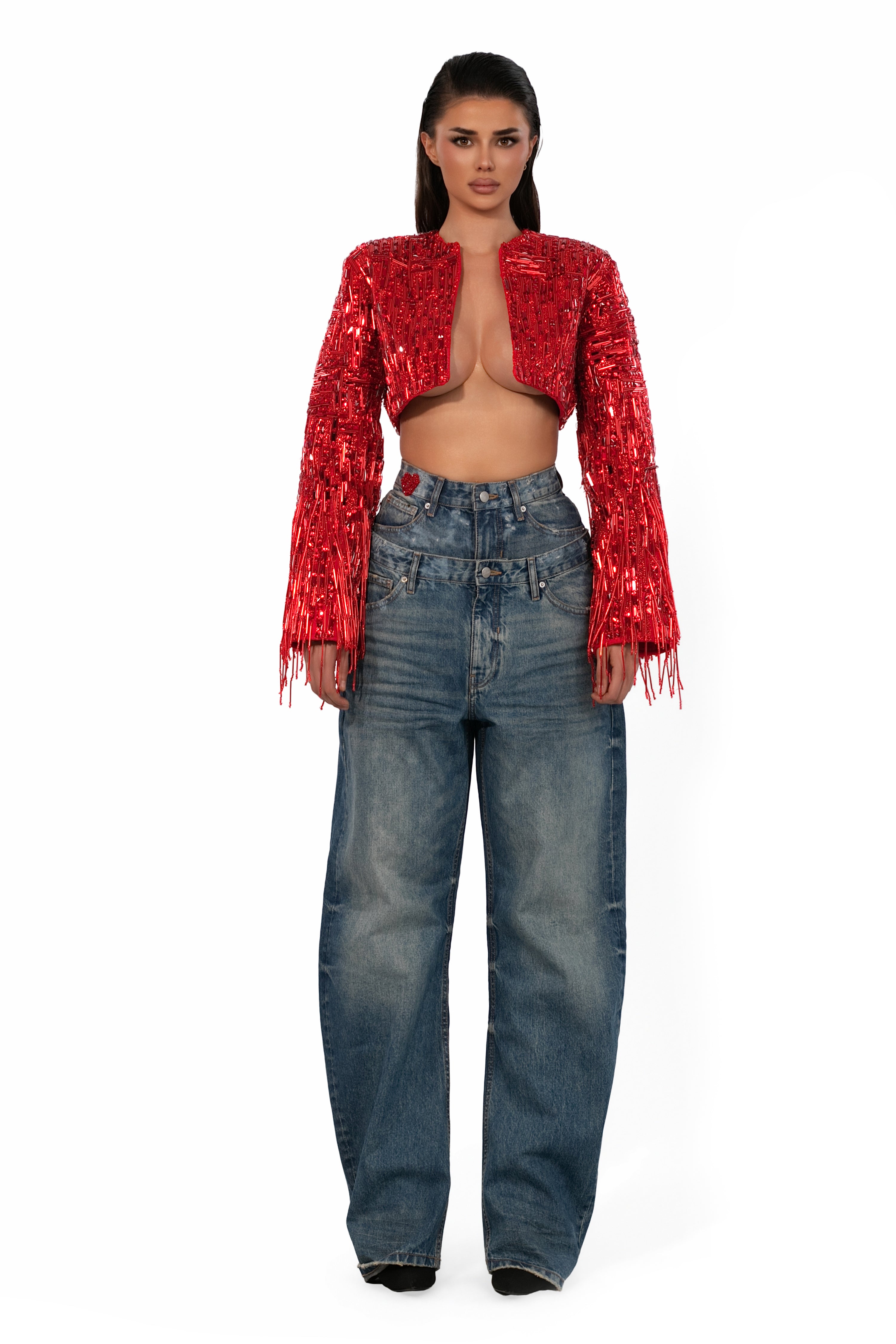 The model’s height: 5'7/170cm, bust: 32'/81cm, waist: 24'4"/62cm, hips: 35'8"/91cm