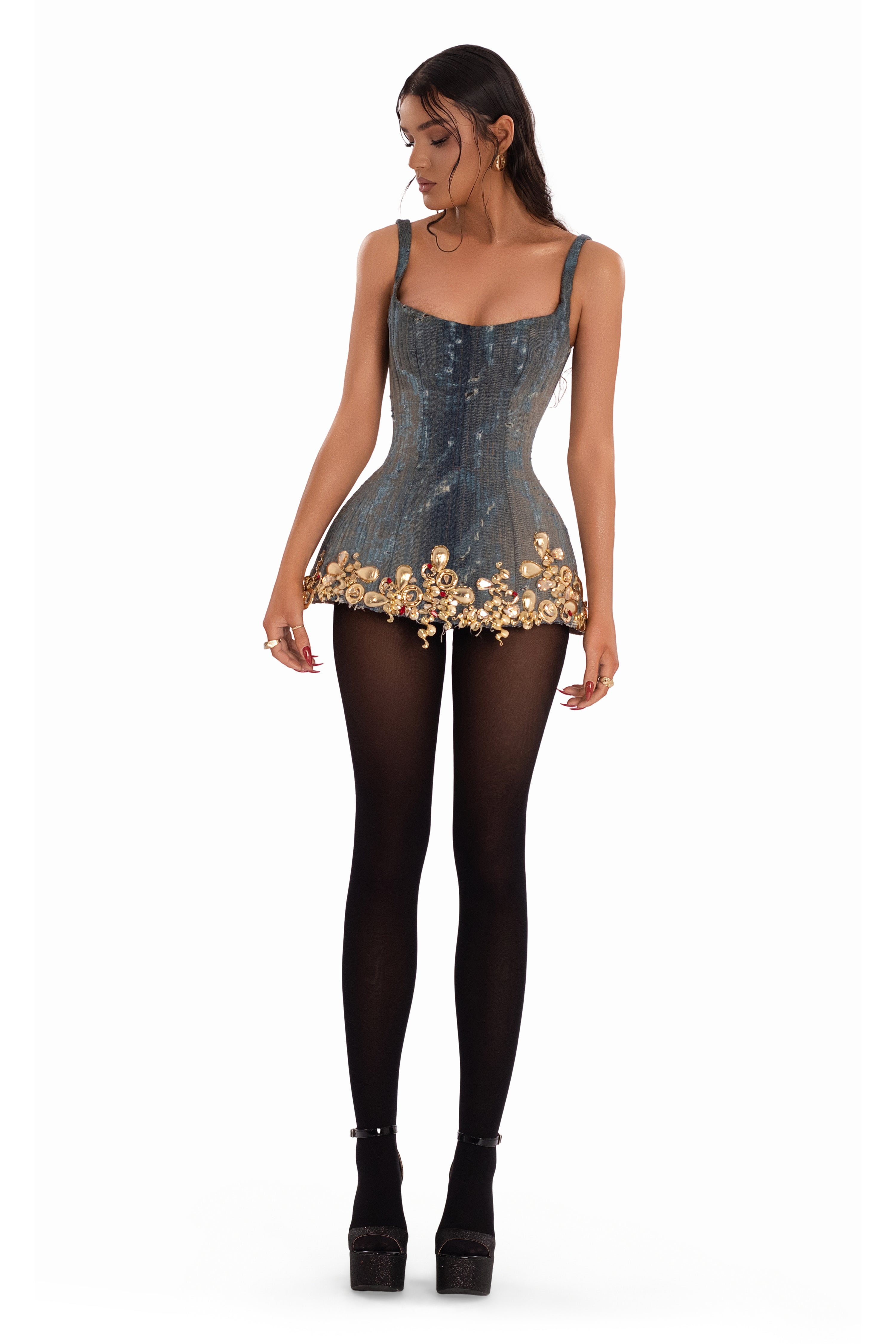 The model’s height: 5'7/170cm, bust: 32'/81cm, waist: 24'4"/62cm, hips: 35'8"/91cm