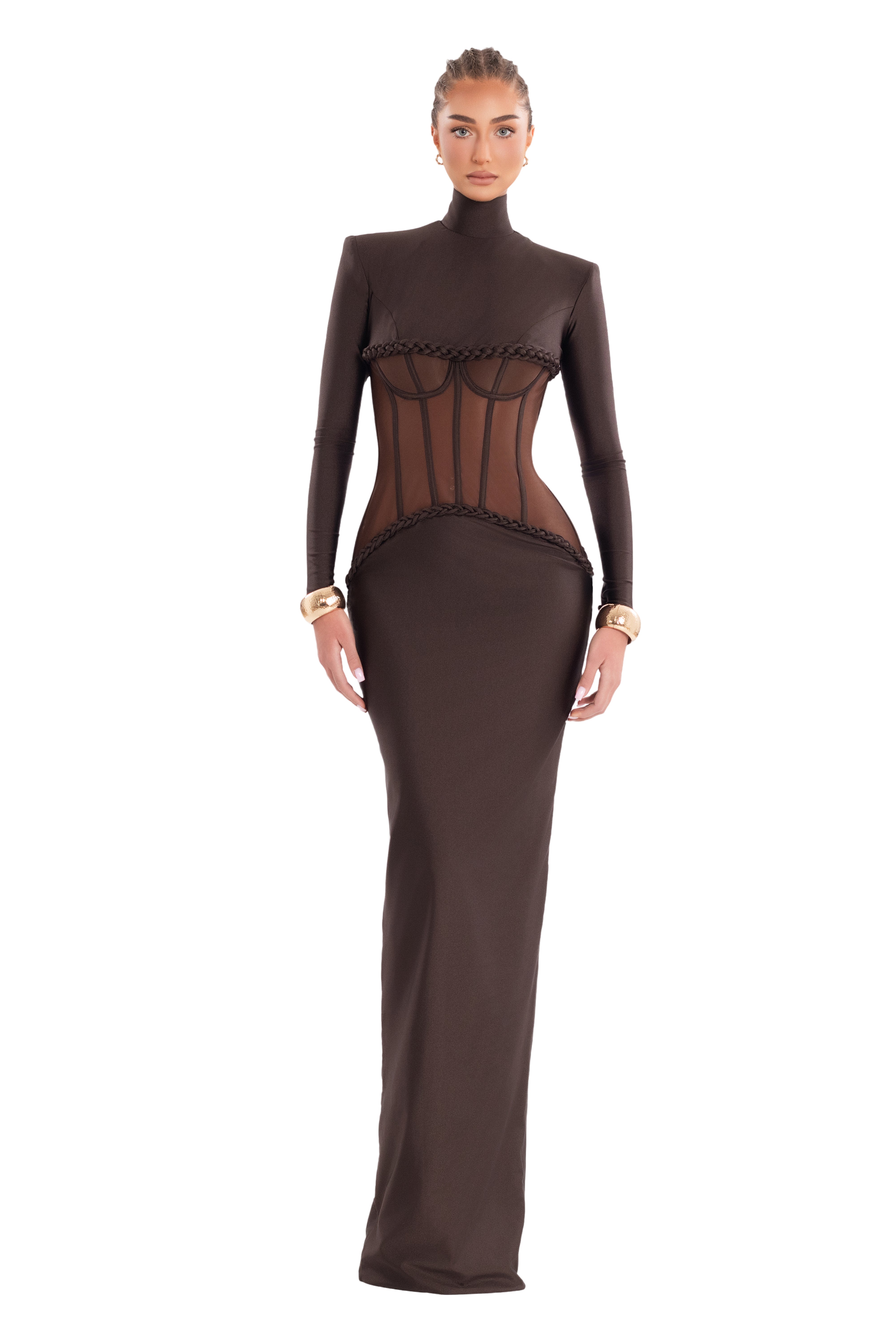 The model’s height: 5'7/170cm, bust: 32'/81cm, waist: 24"/61cm, hips: 37"/94cm