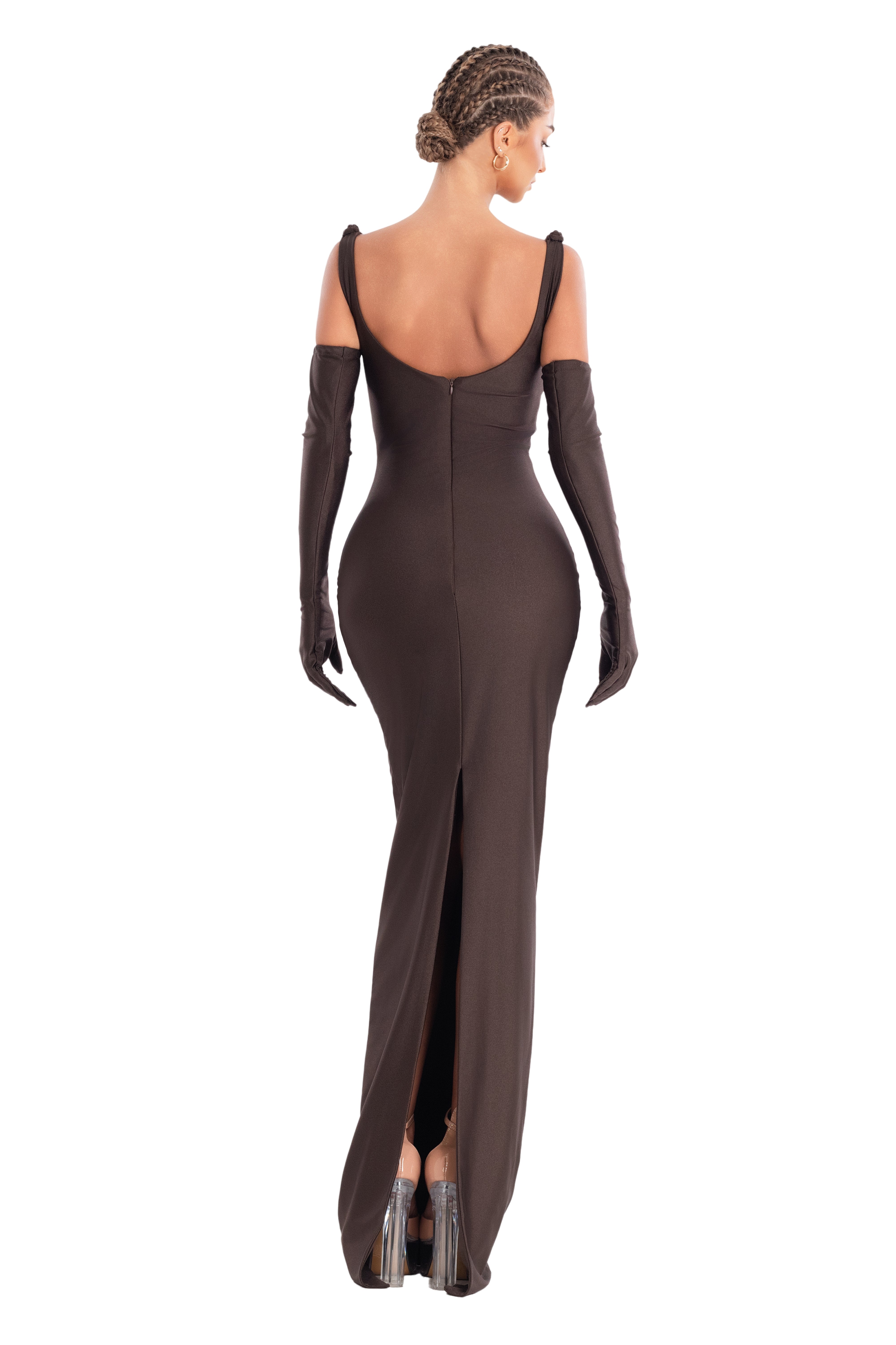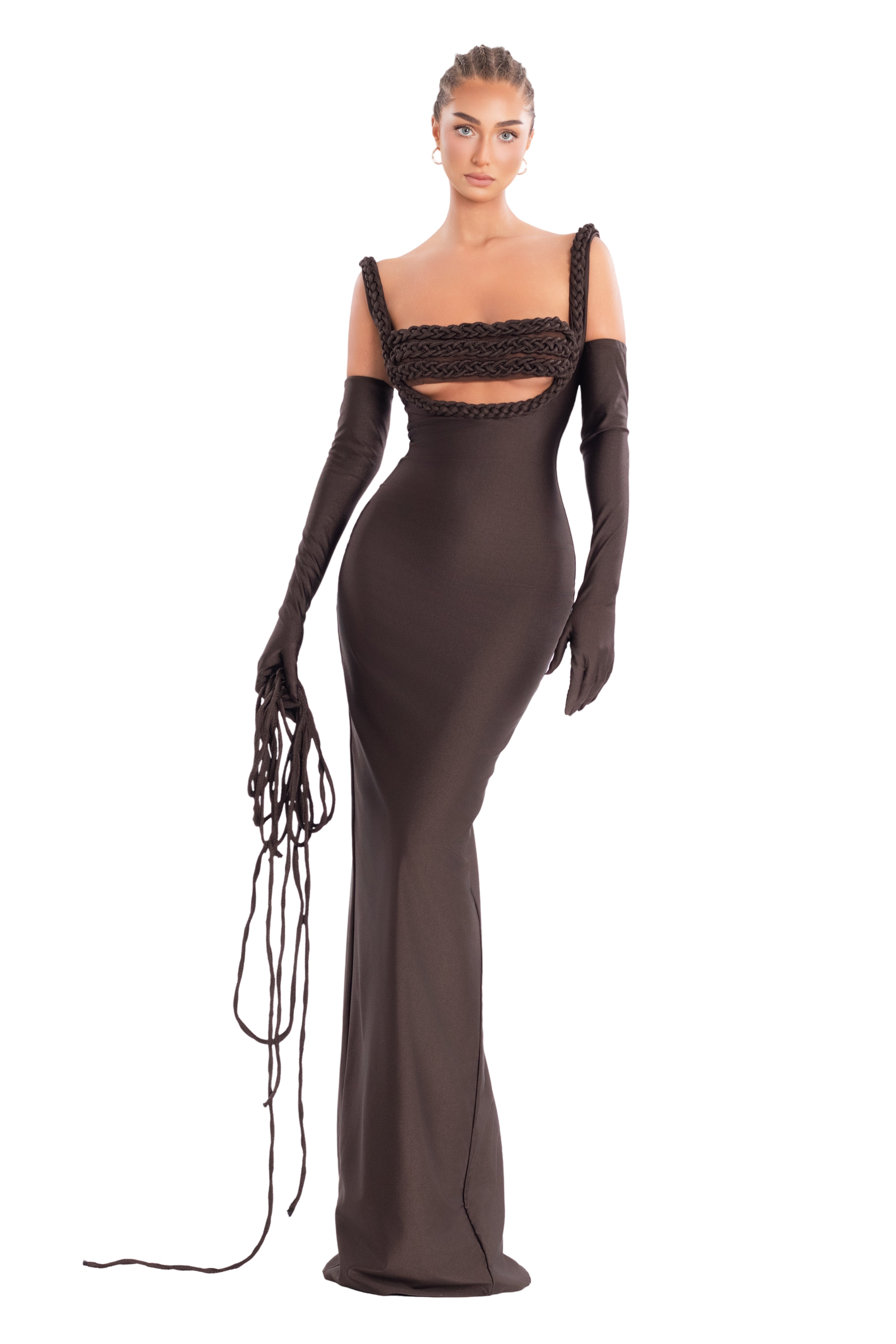 The model’s height: 5'7/170cm, bust: 32'/81cm, waist: 24"/61cm, hips: 37"/94cm
