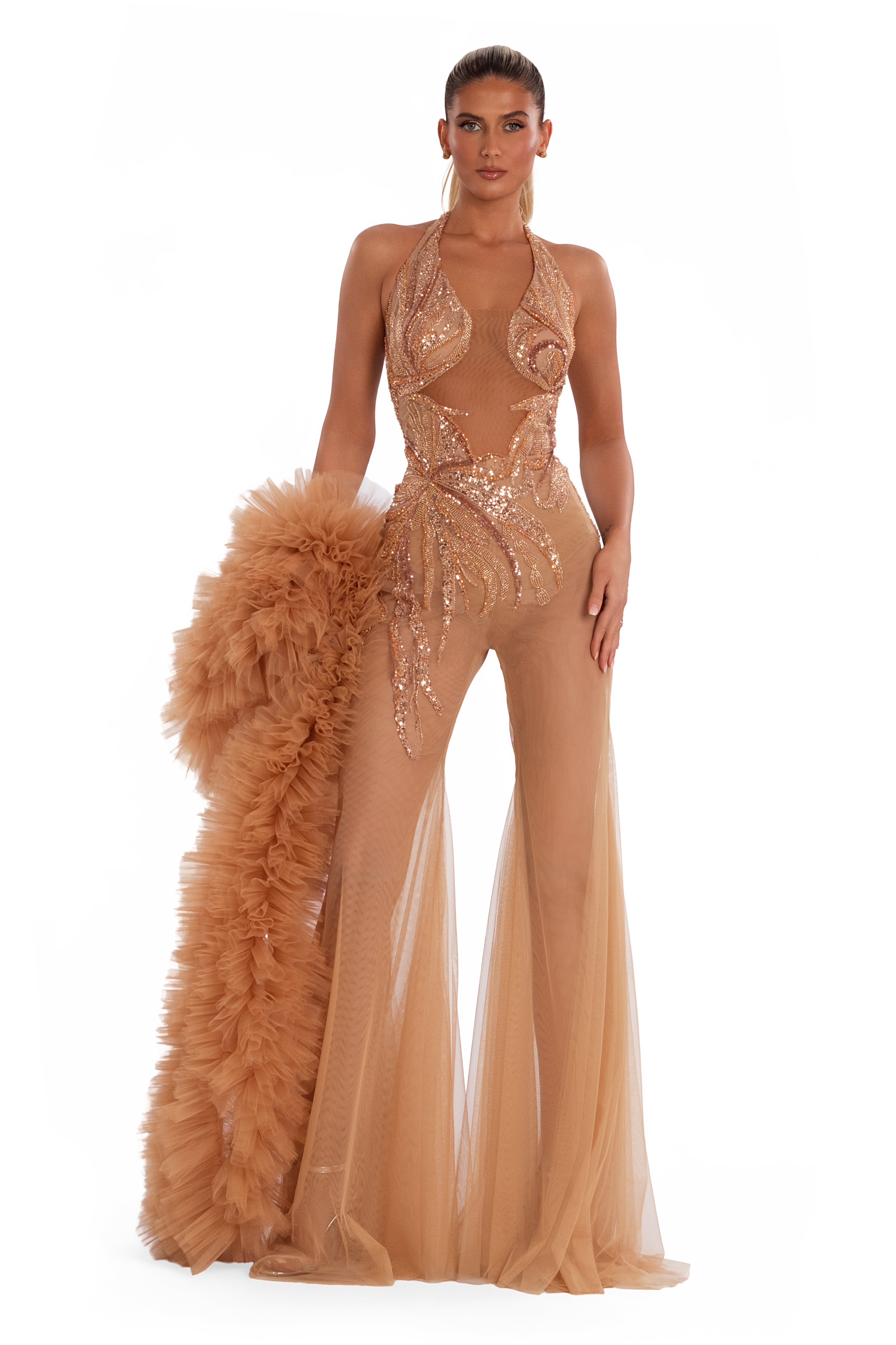 Nude mesh halter design