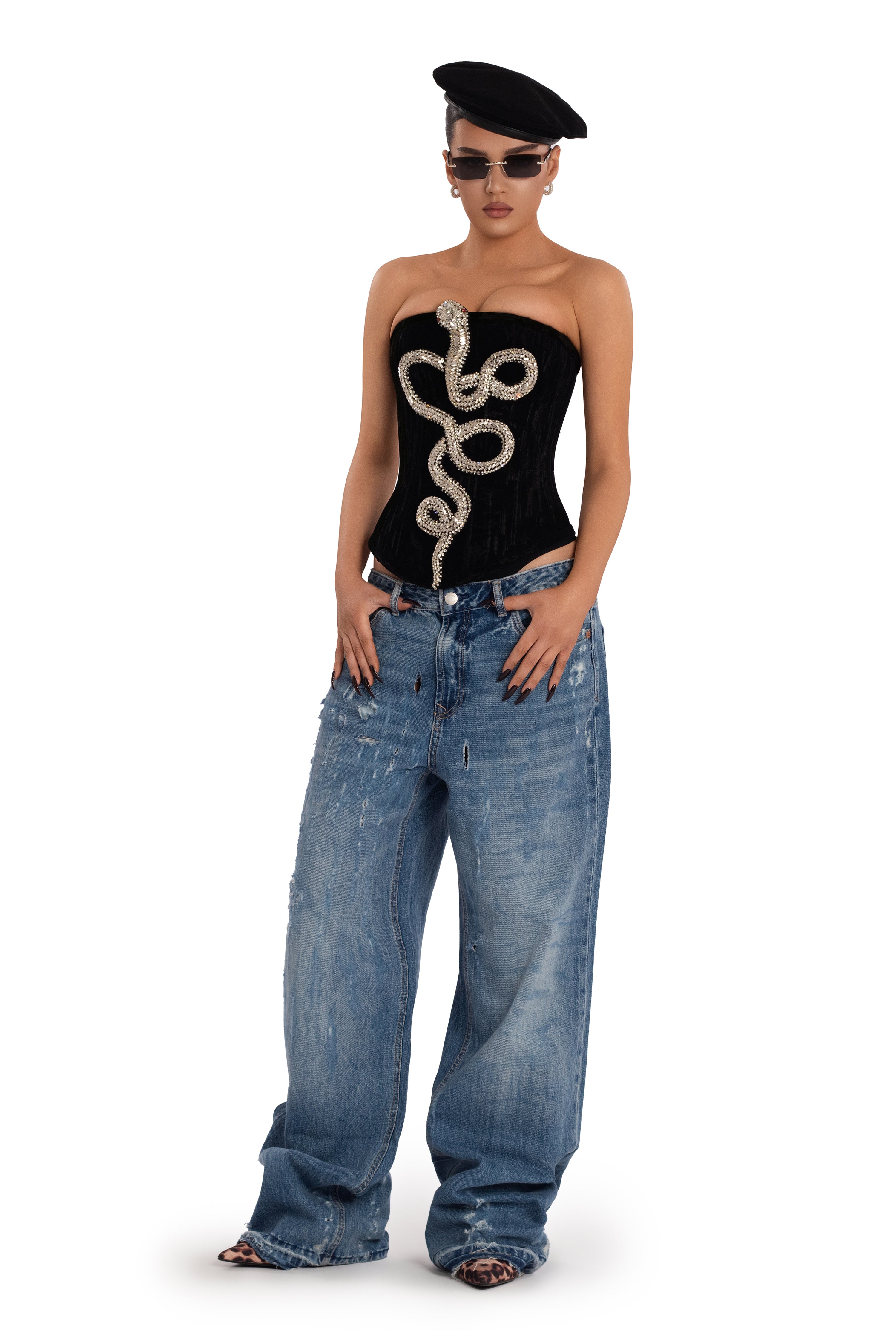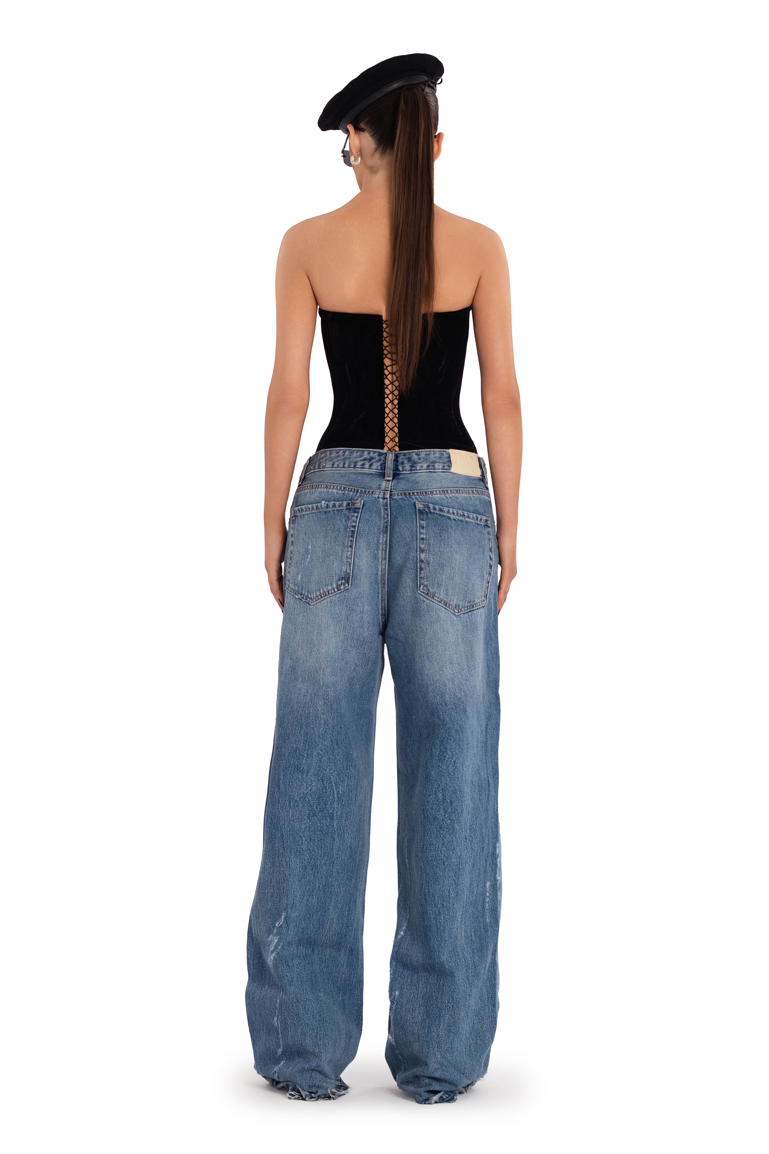 Black distressed velvet fabric for a unique, rebellious aesthetic