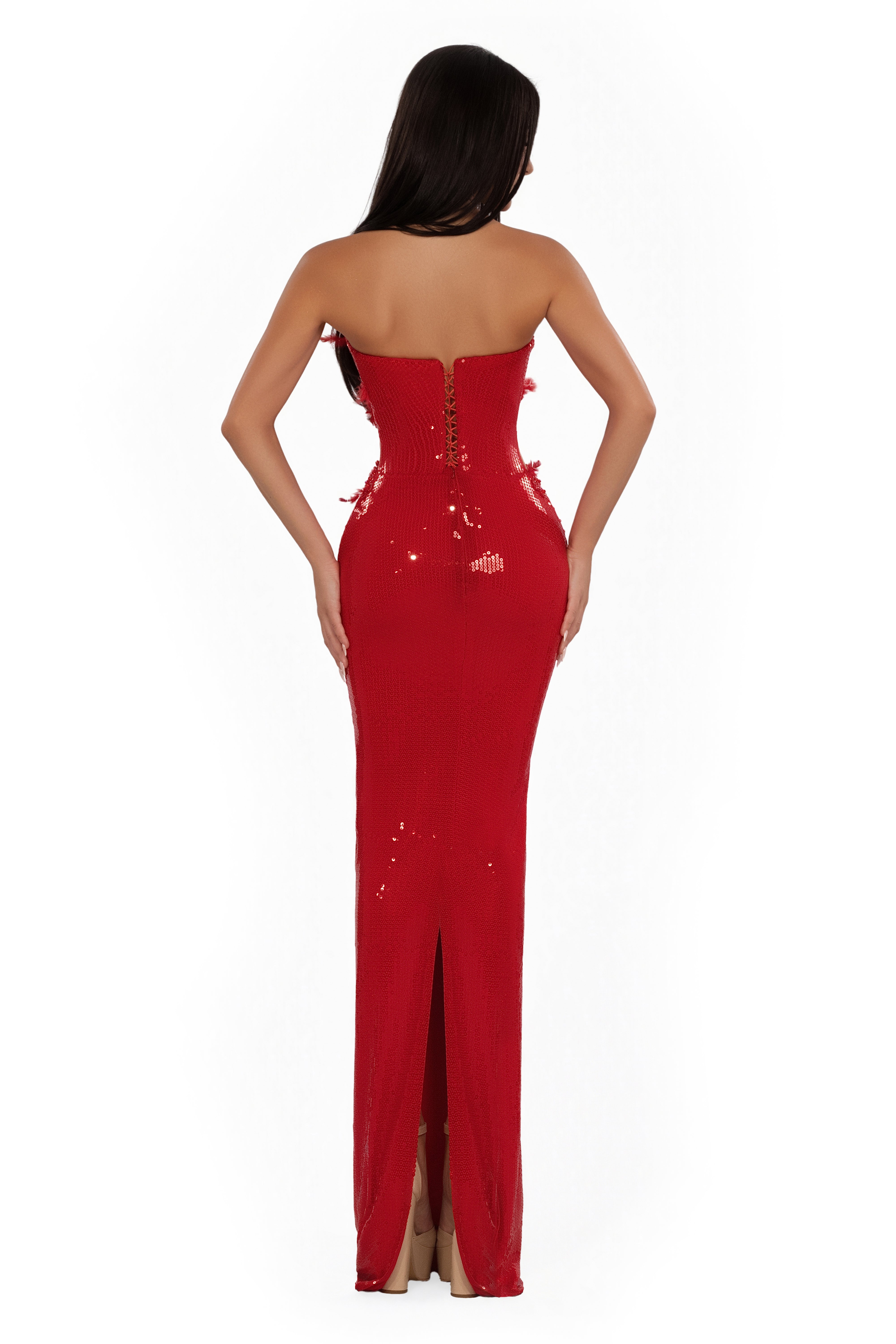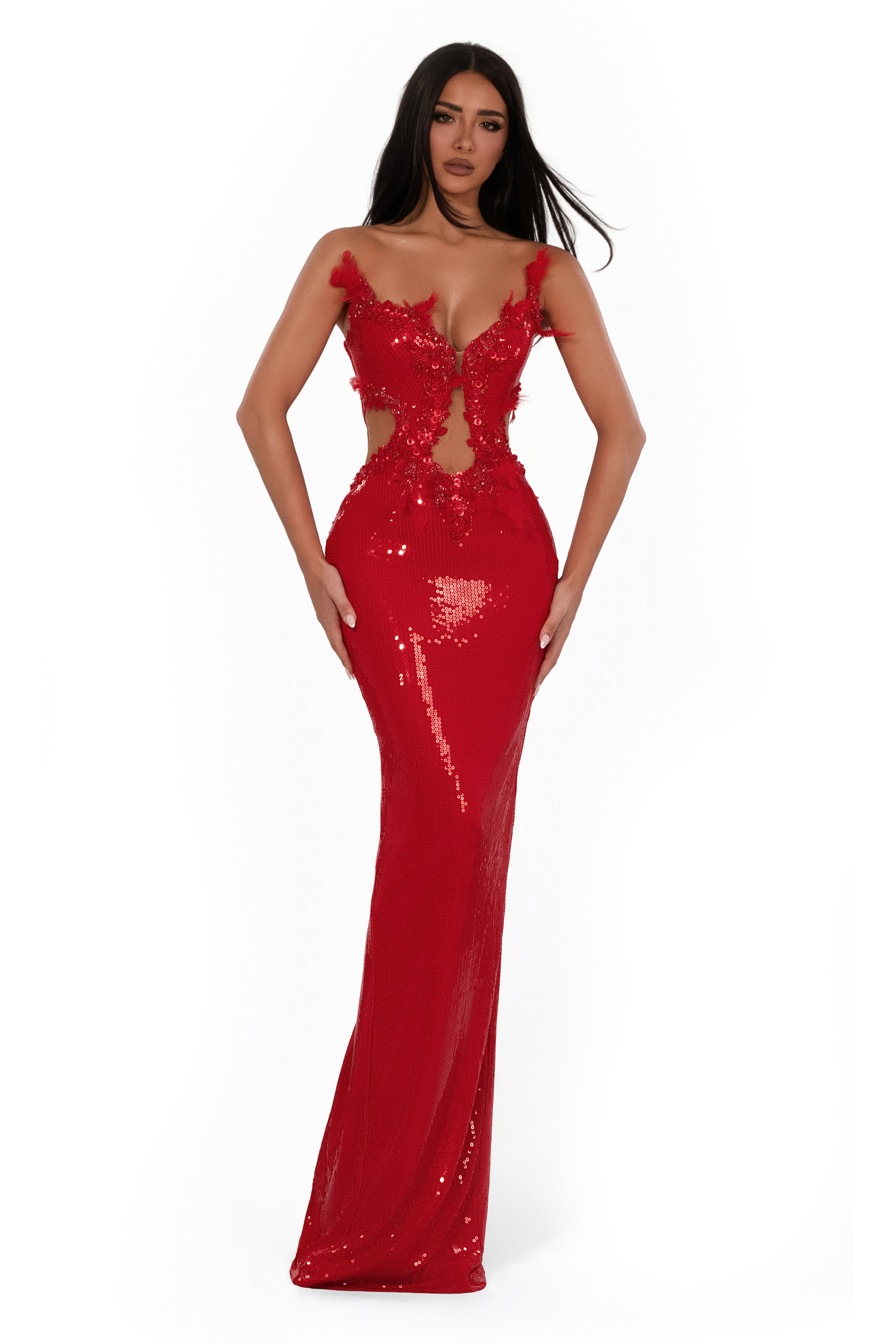 • The model’s height: 5'7/170cm, bust: 32'/81cm, waist: 24'4"/62cm, hips: 35'8"/91cm