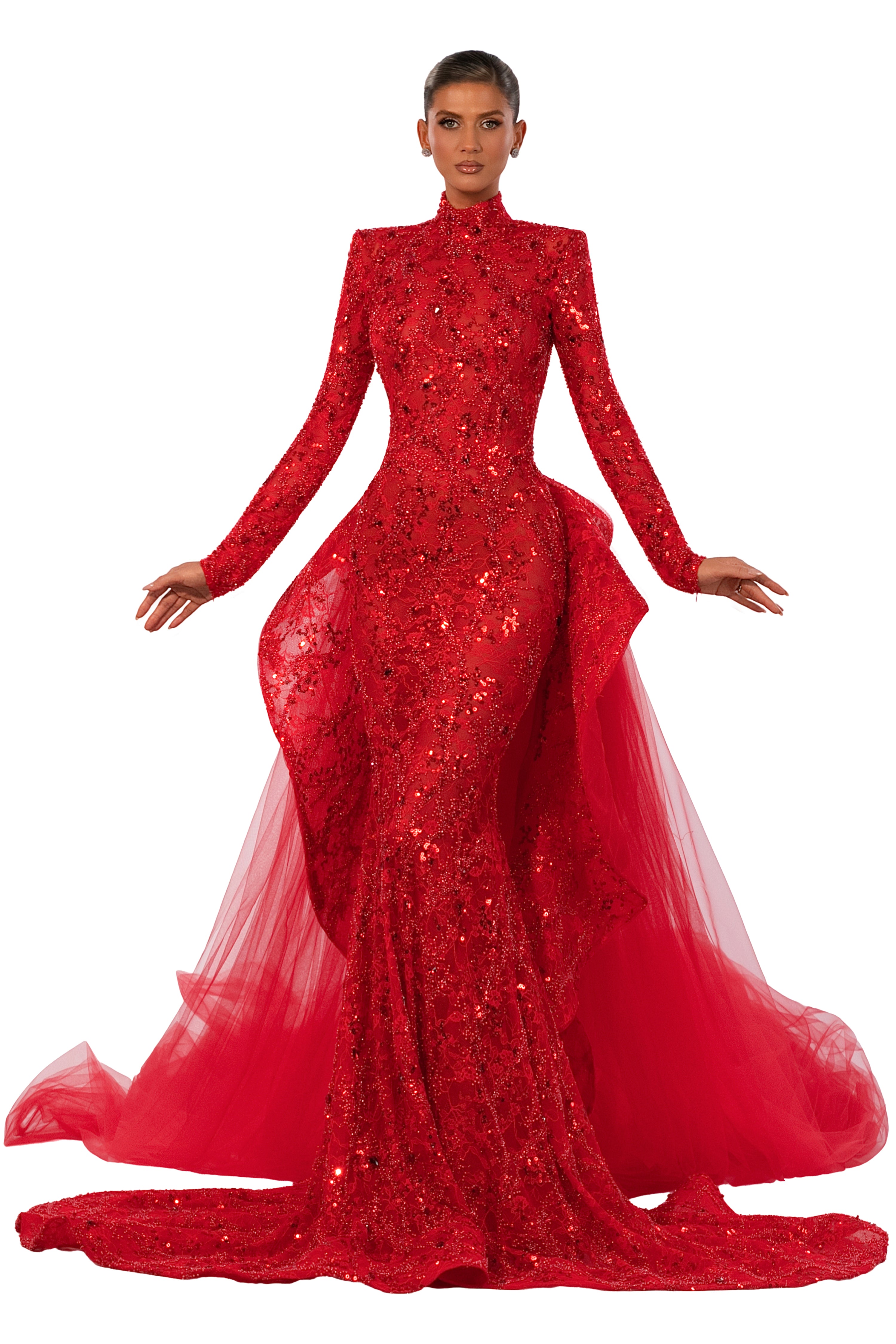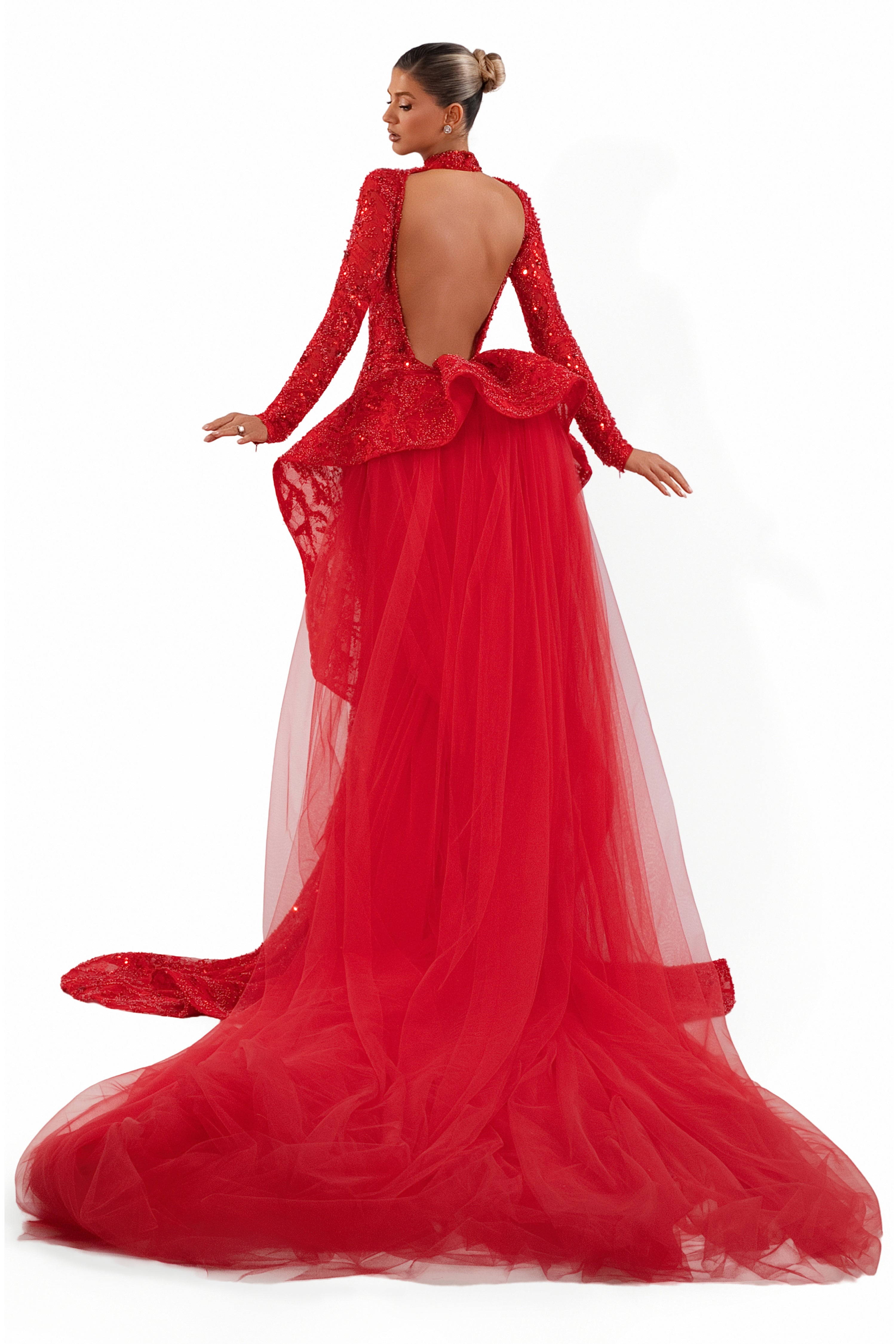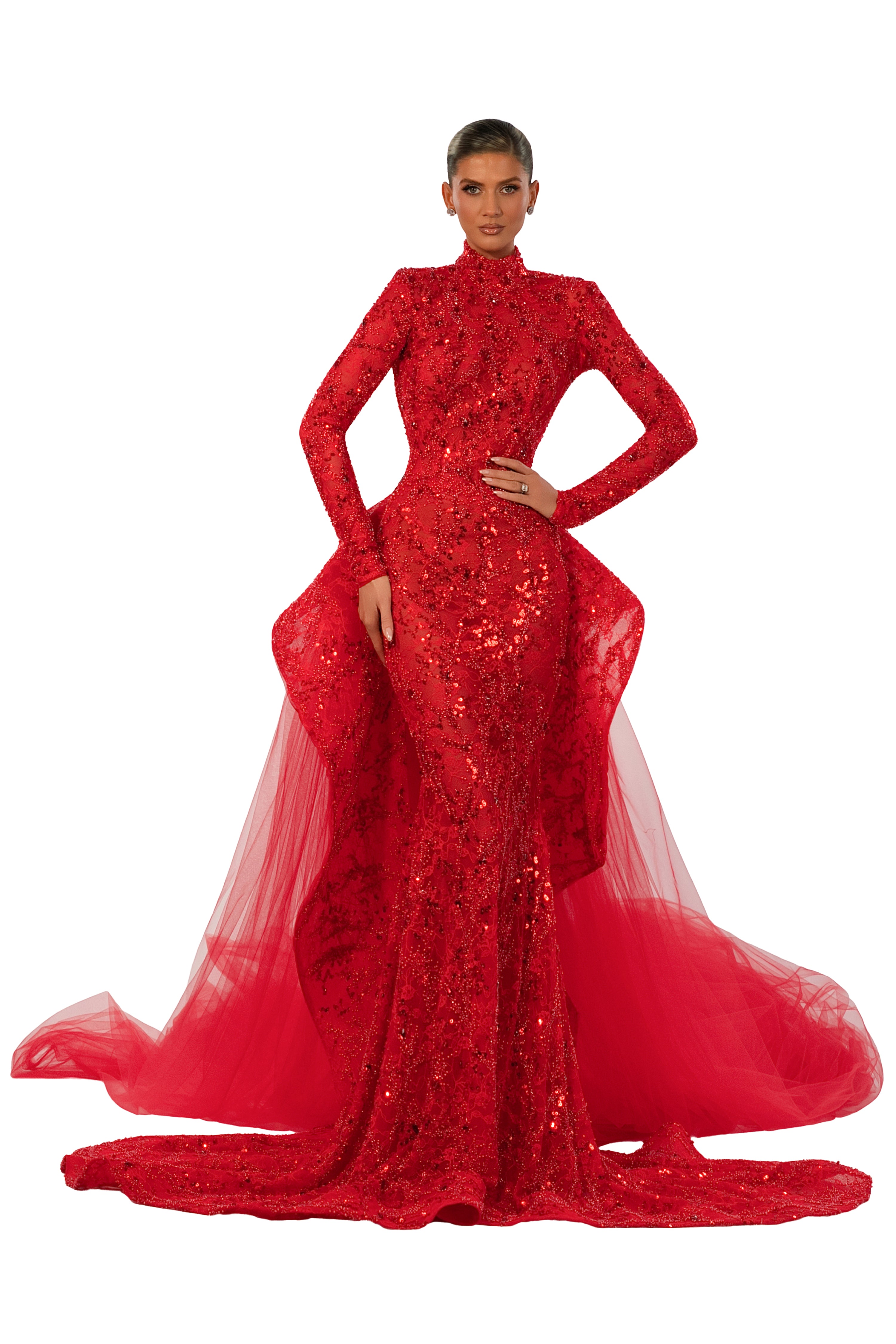 BASE FABRIC: Soft Red Embellished Lace Fabric — 100%, 60% Polyester, 40% Nylon