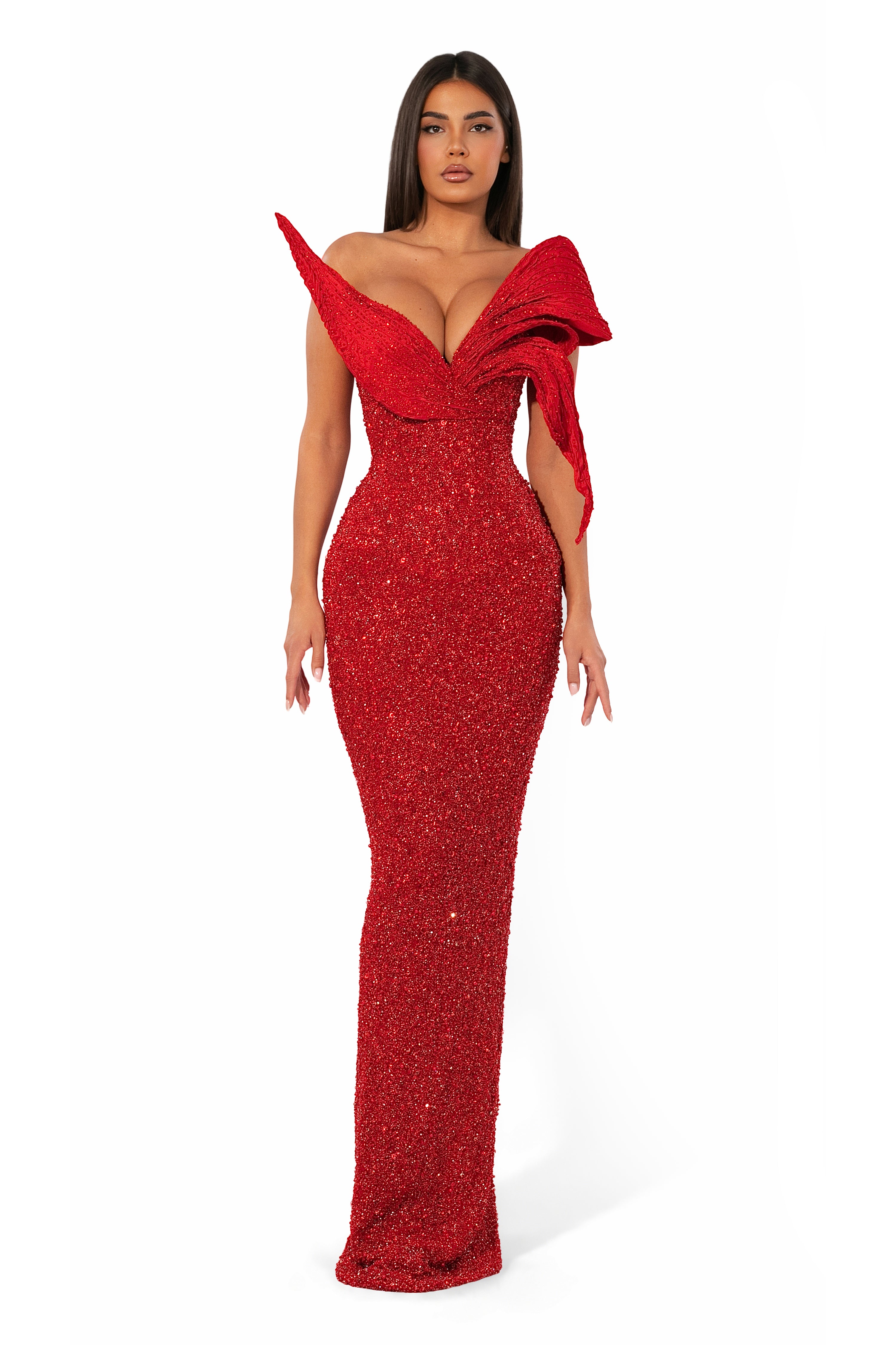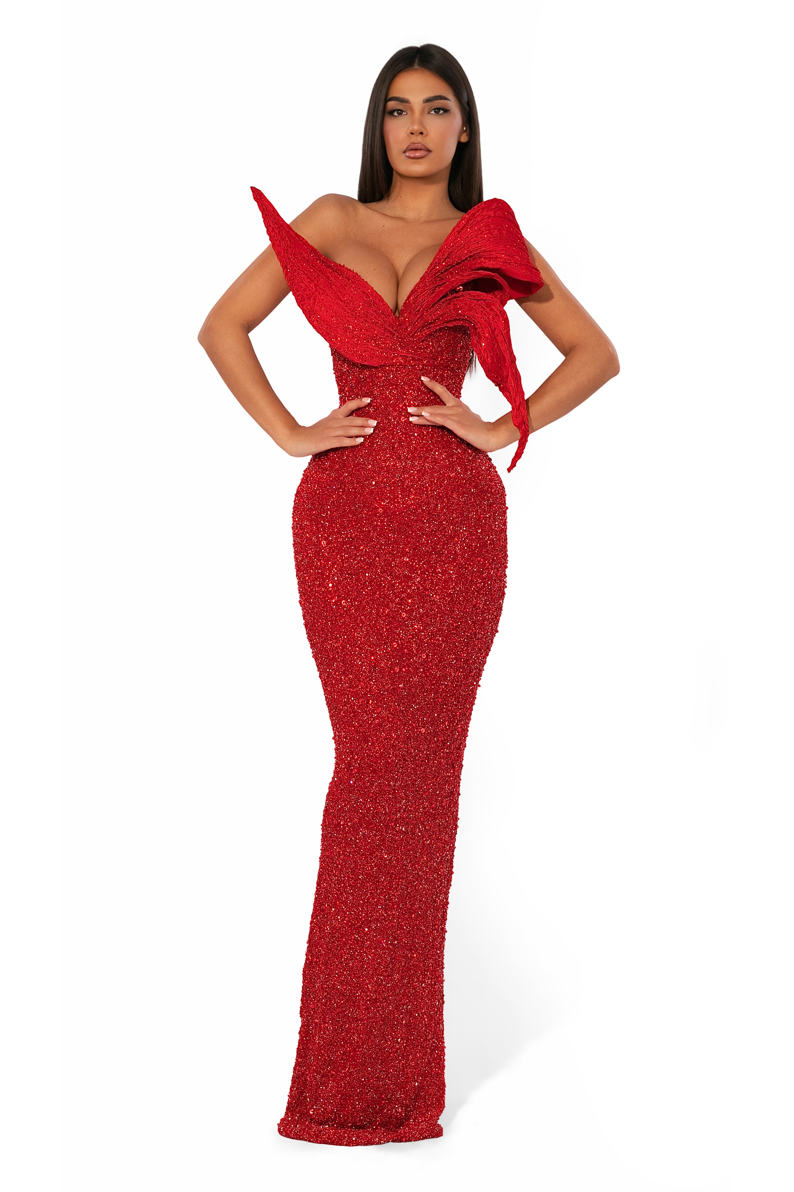 BASE FABRIC: Stretchy Fabric, All Hand-applied Beading and Sequined Embroidery