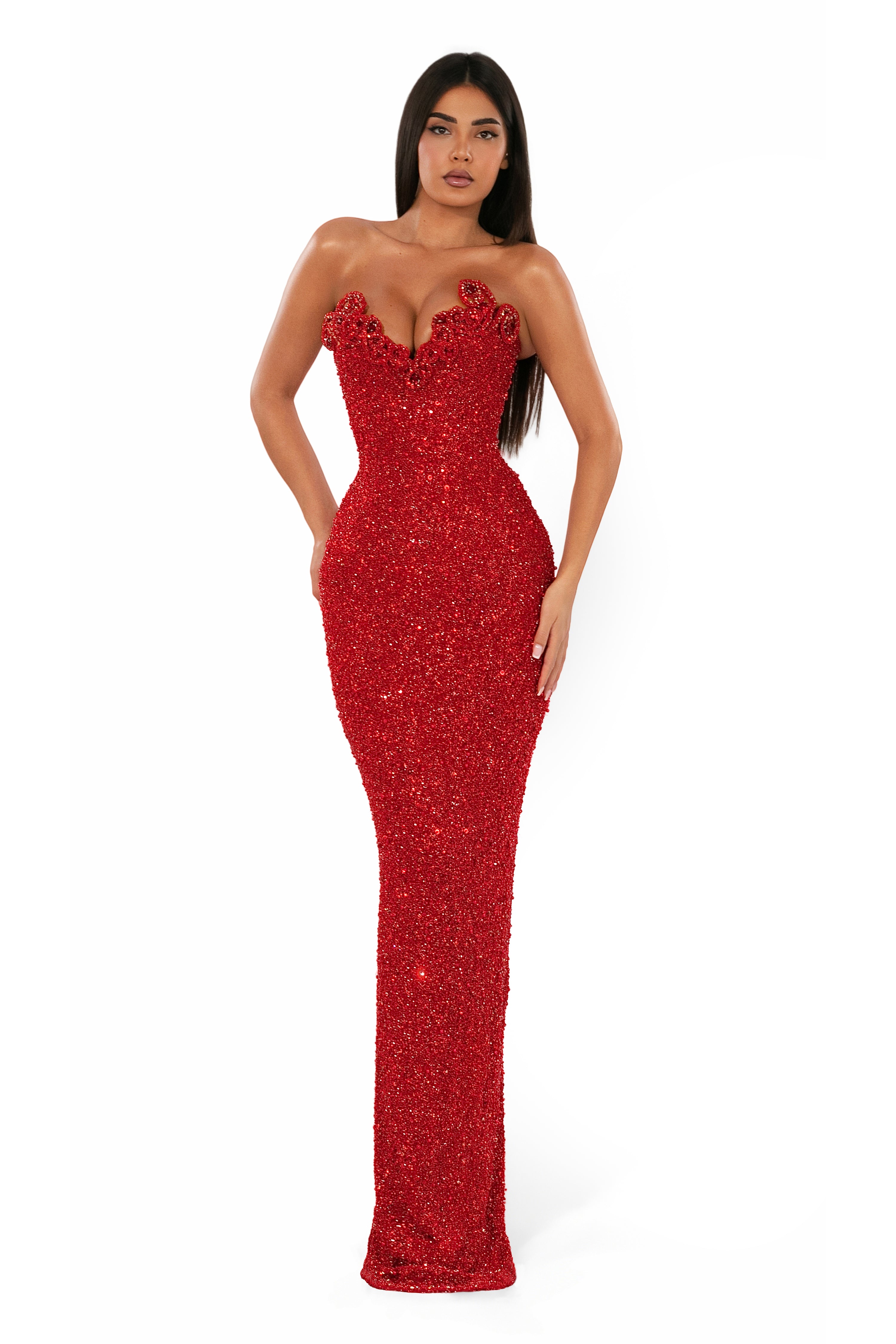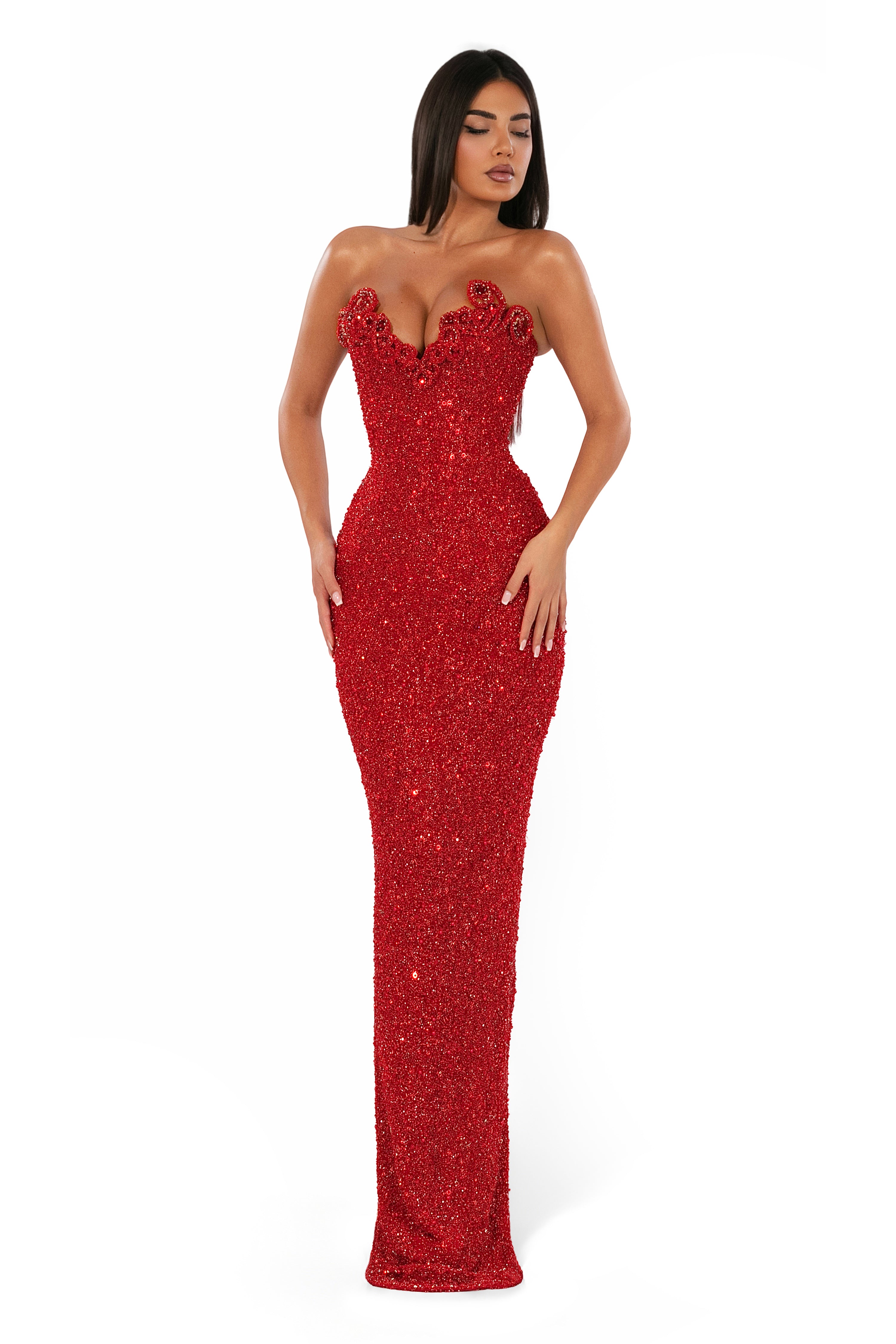 Fabric: Stretchy Fabric, All Hand-applied Beading and Sequined Embroidery