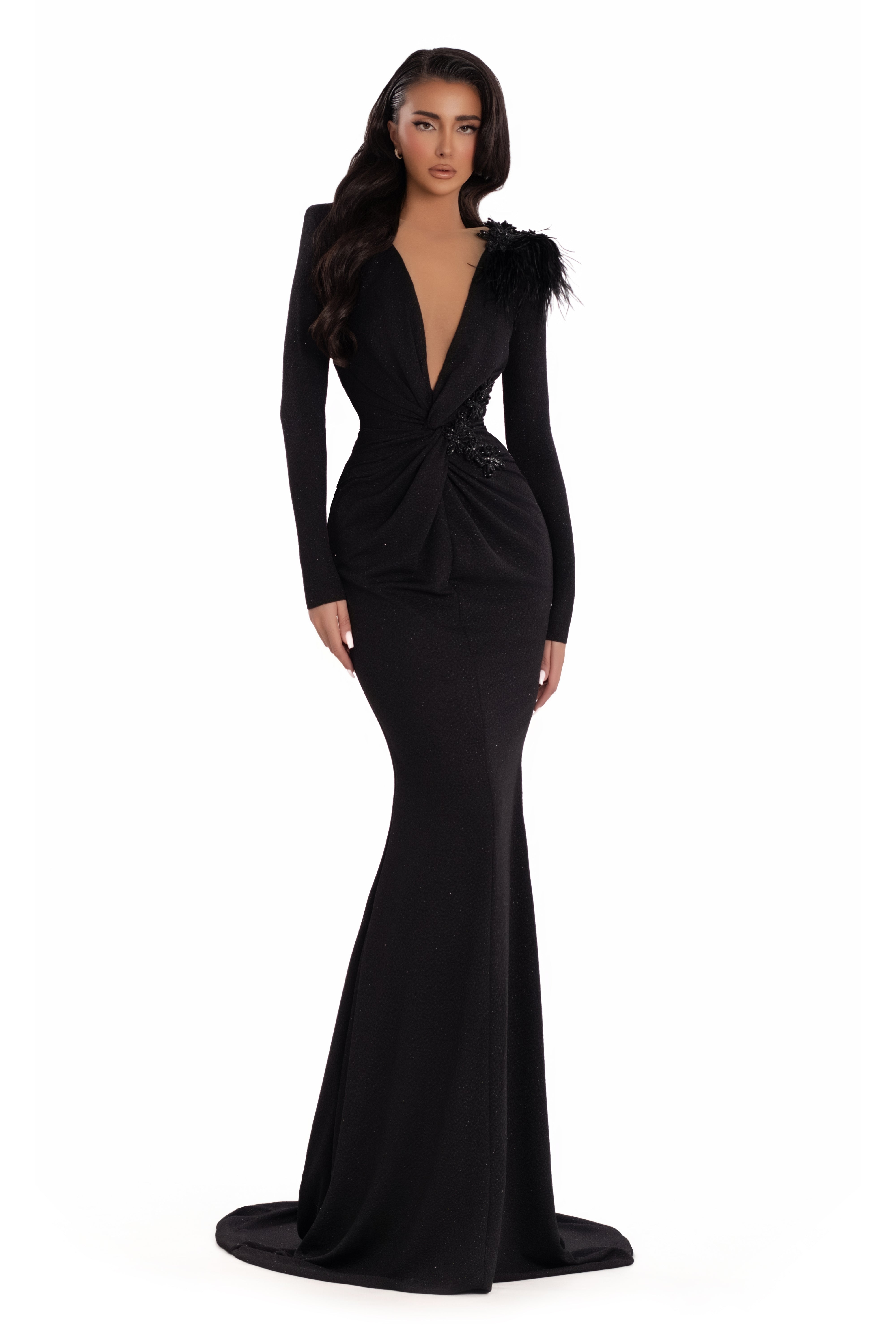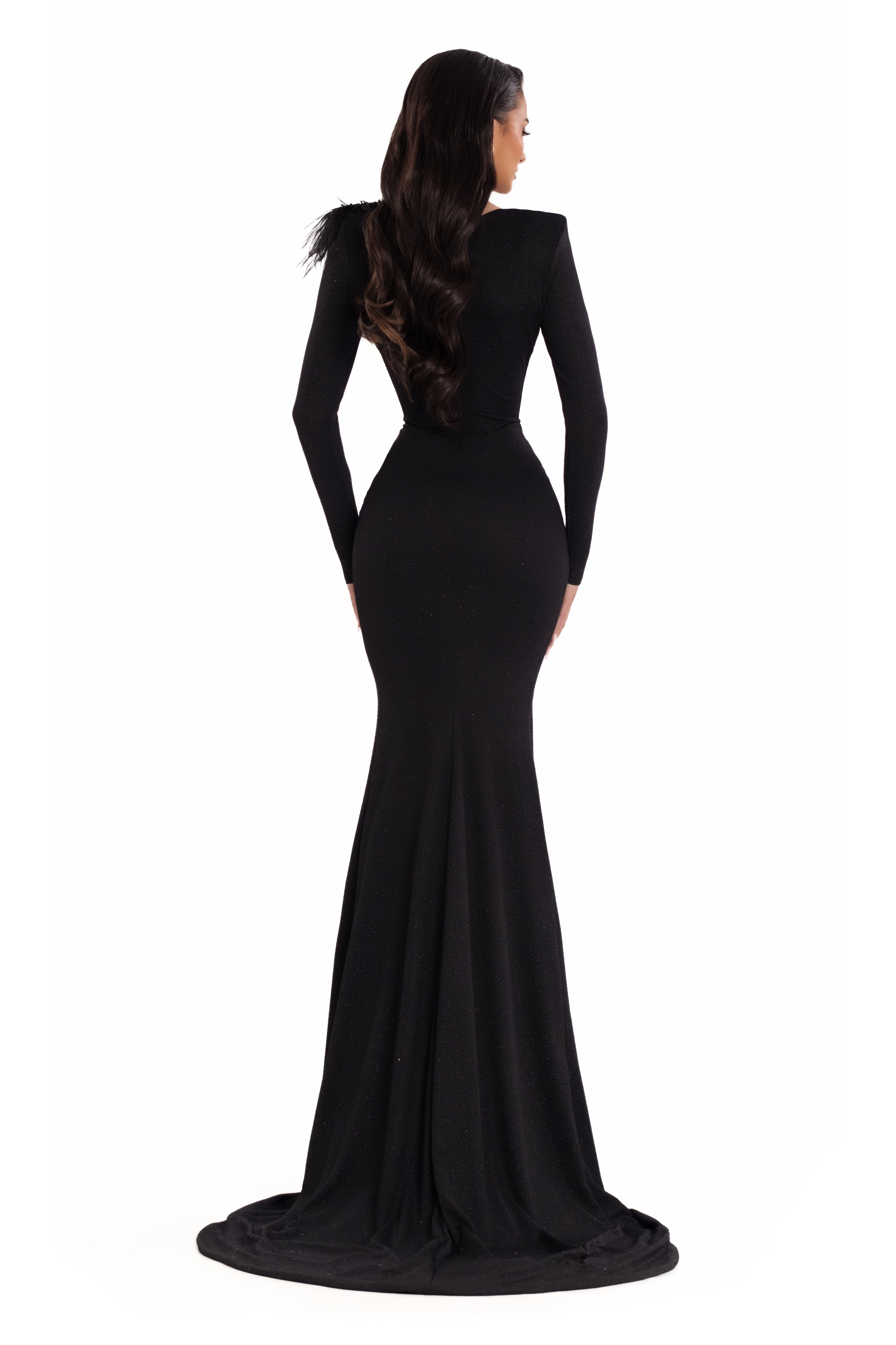• Long sleeves with feather detail