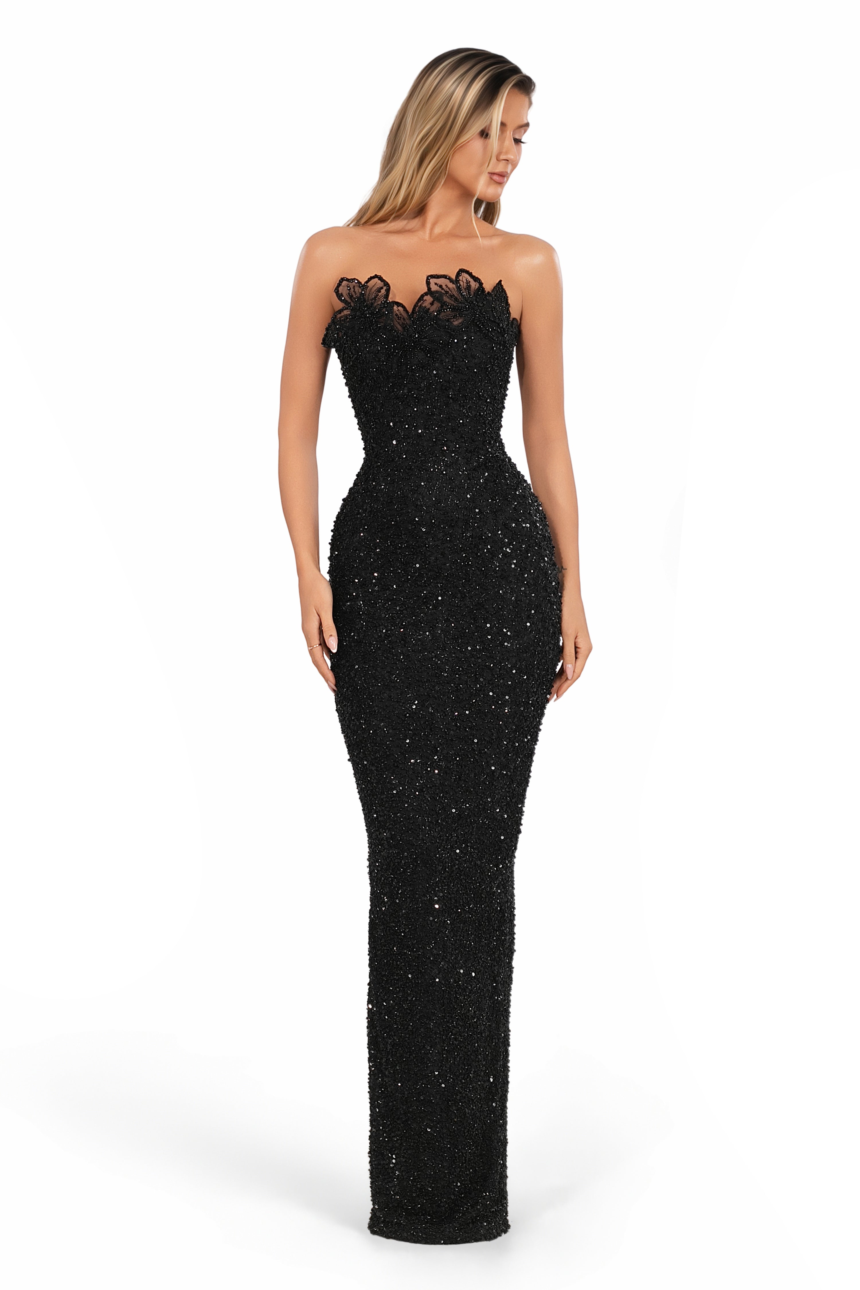 Strapless floral beaded neckline