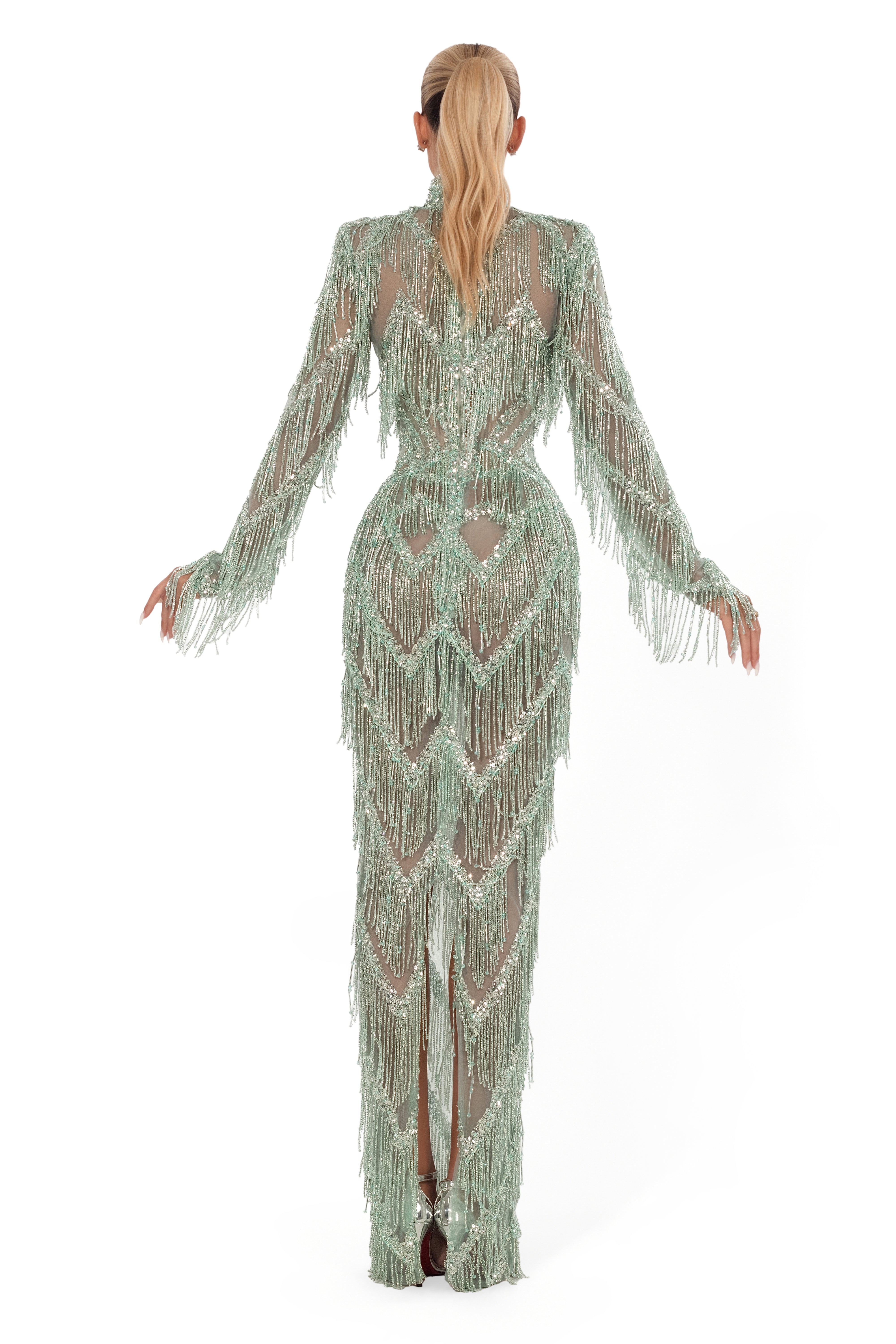 DECORATION: Machine-embroidered embellishments with linear beading fringes