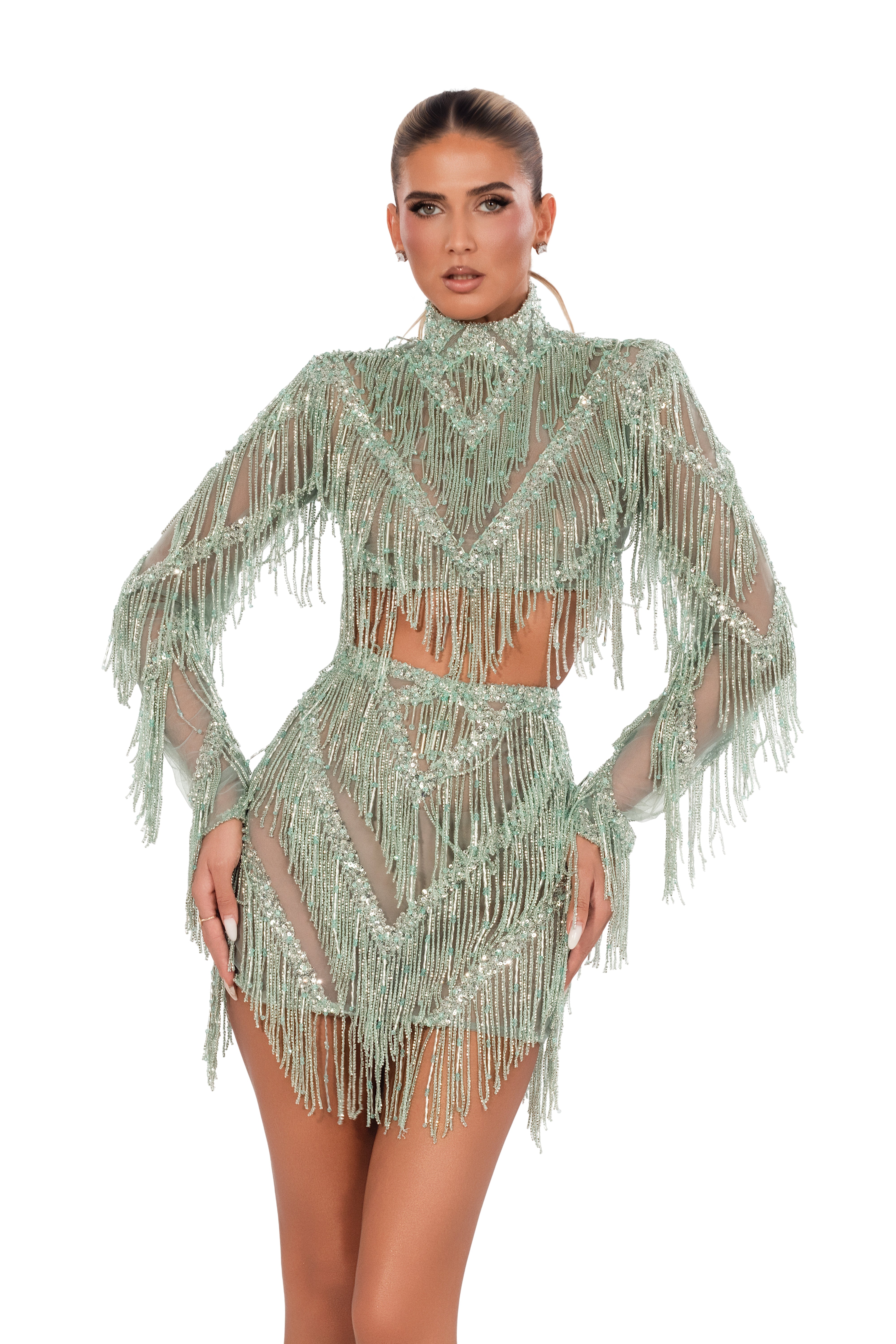 Fabric Content: Base Fabric, Double Tulle Base – Nude and Light Green Layers, 100% Polyester