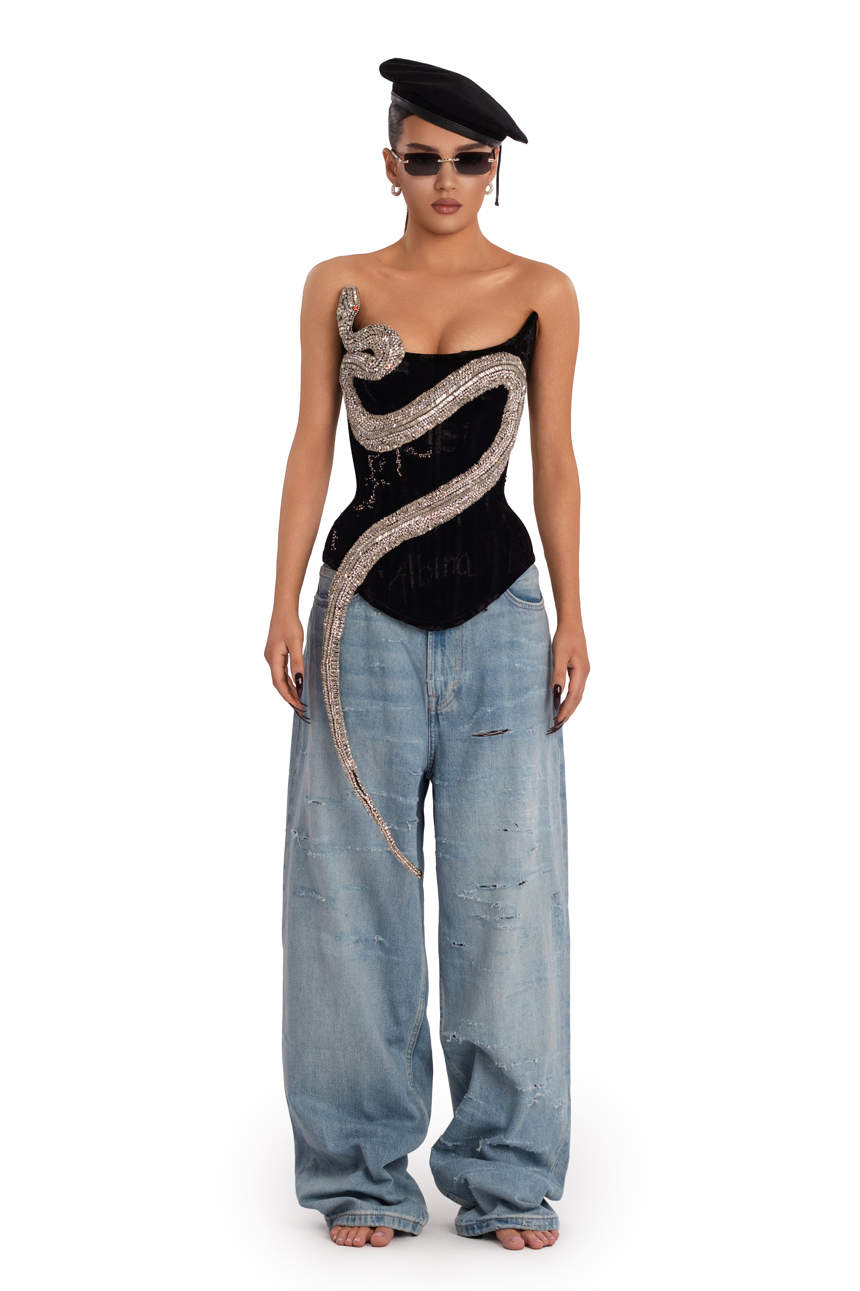 - Hand-embellished crystal snake for a striking, high-fashion touch