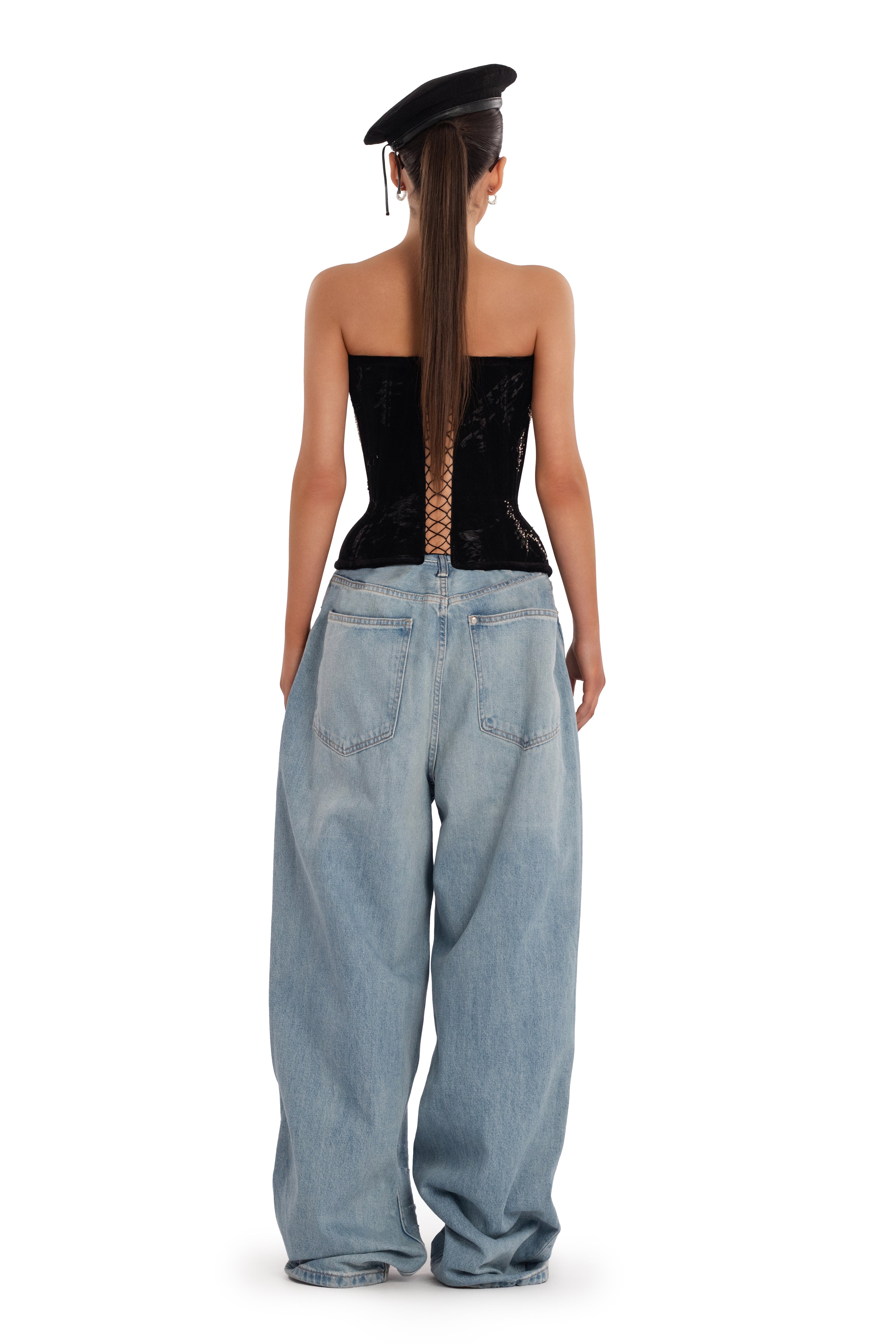 - Black distressed velvet fabric for a bold, modern aesthetic