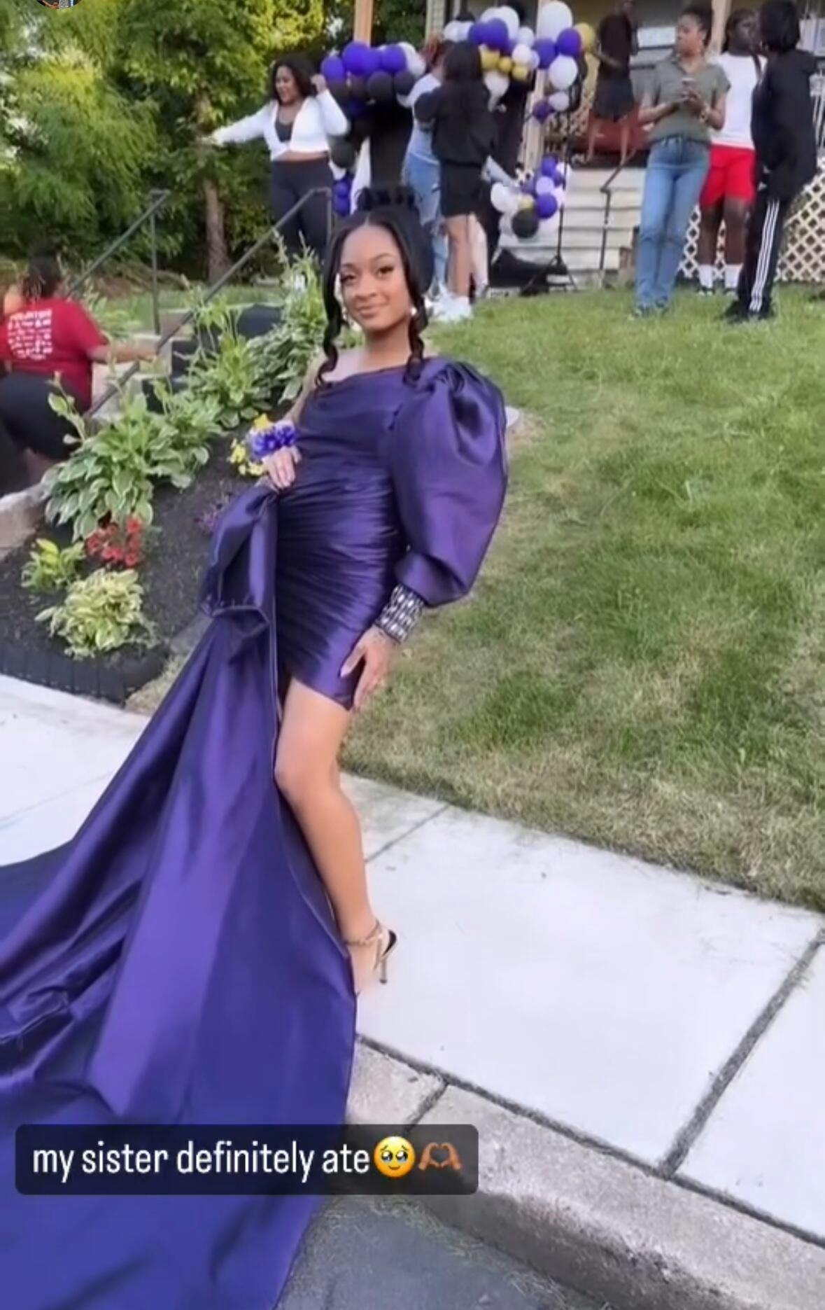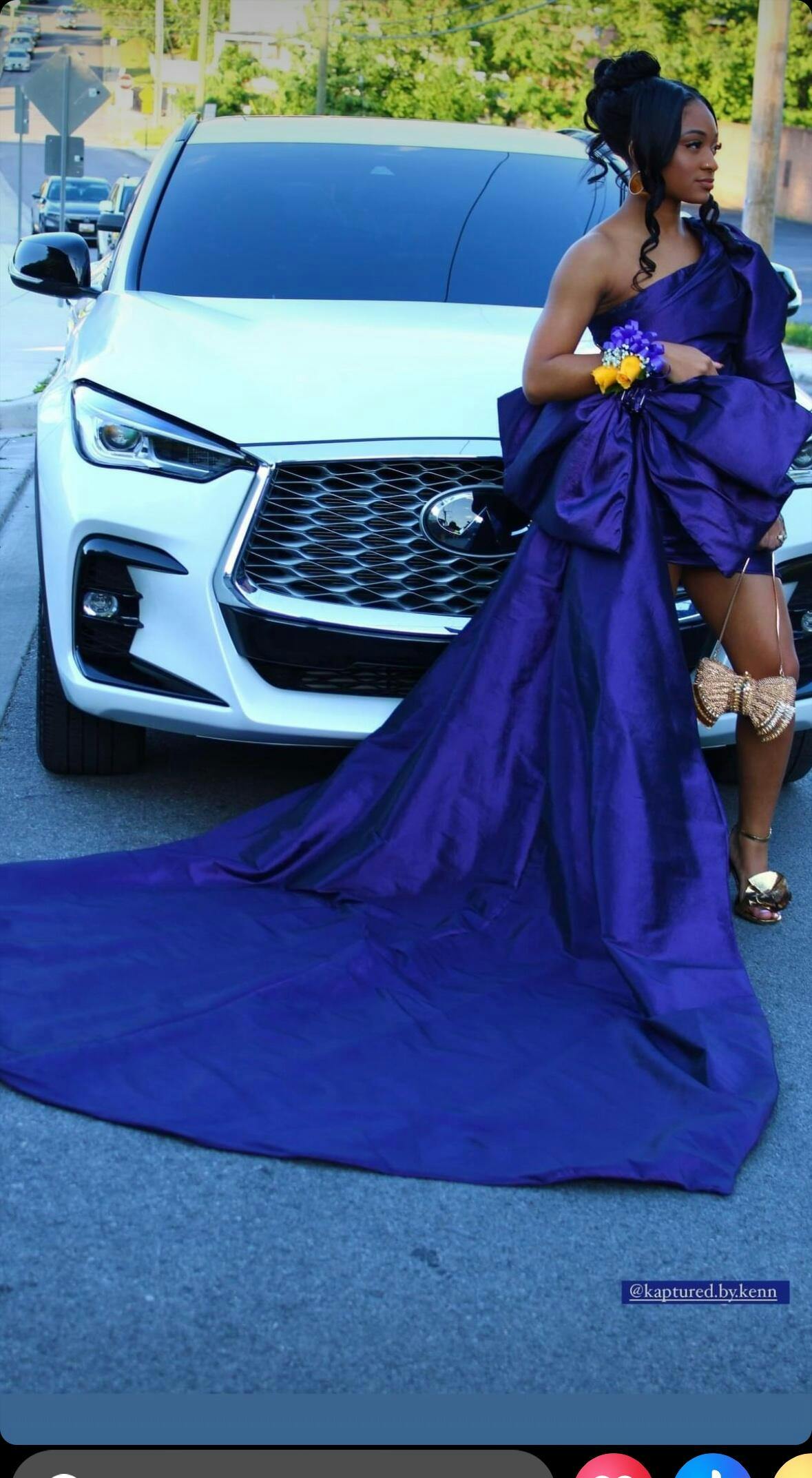 Black dress made of taffeta fabric with ribbon, with a batwing sleeve with a touch of shiny beads.