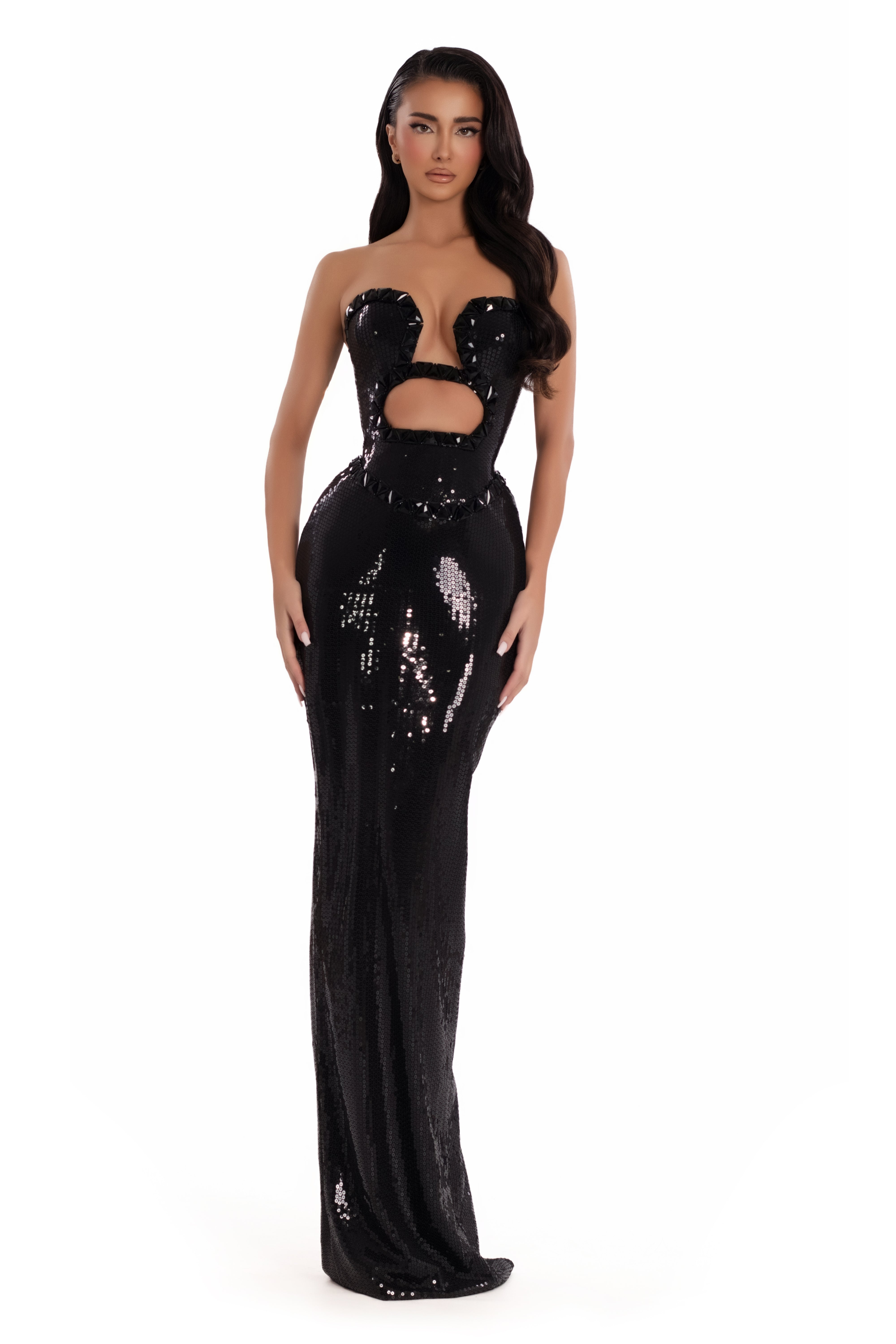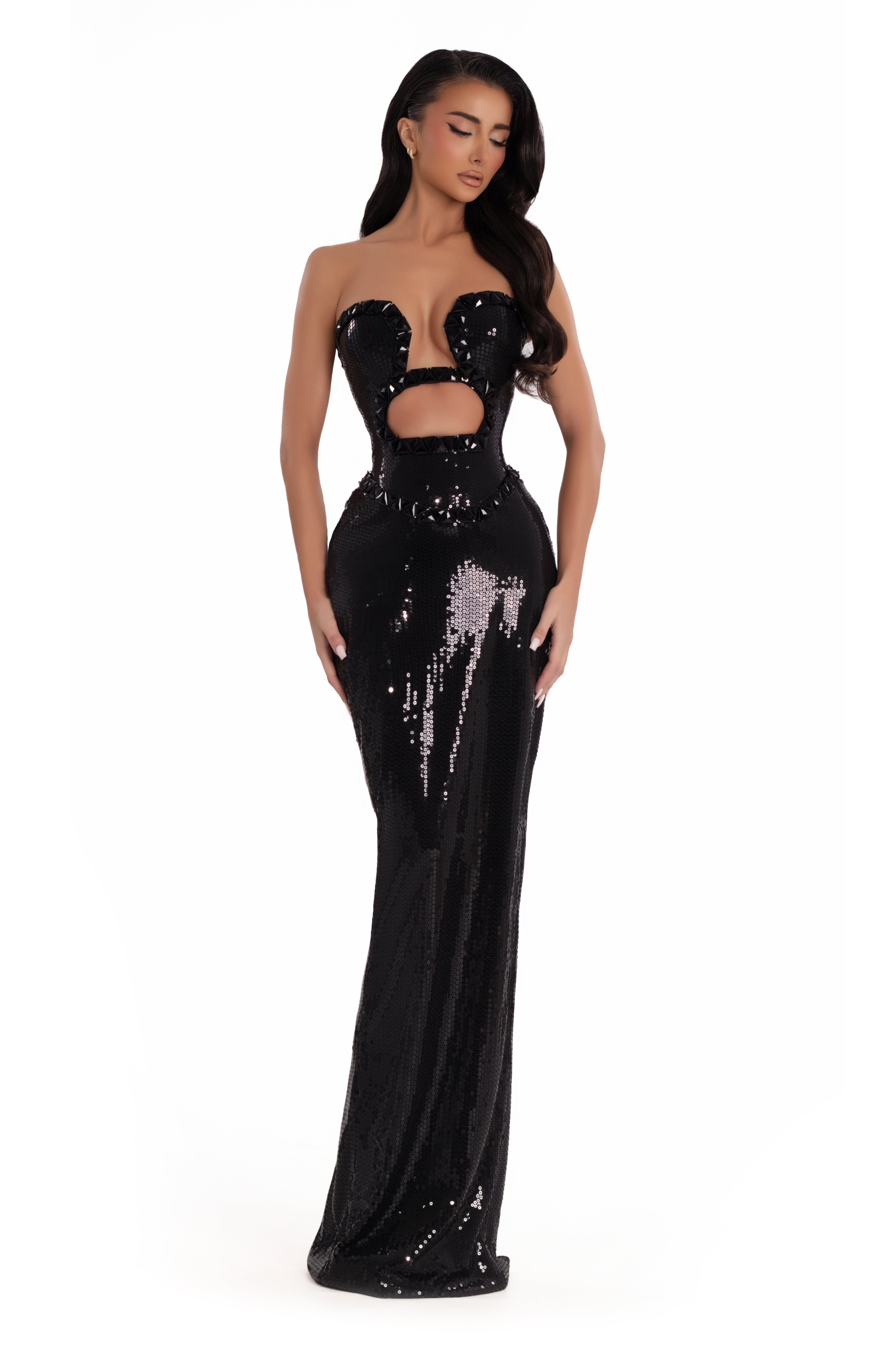 • Strapless neckline with cutout detail
