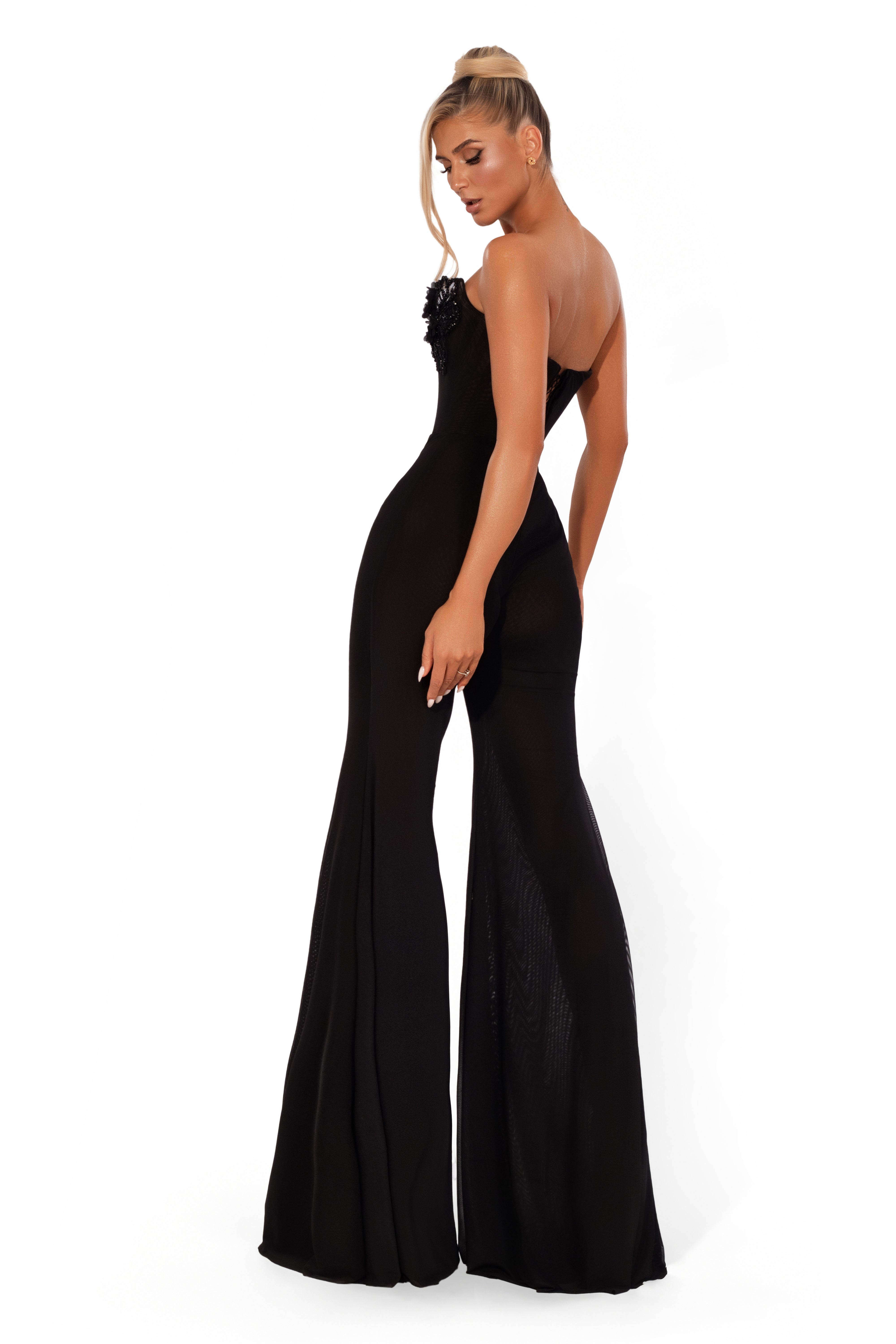 Strapless bodice with floral appliqué cups