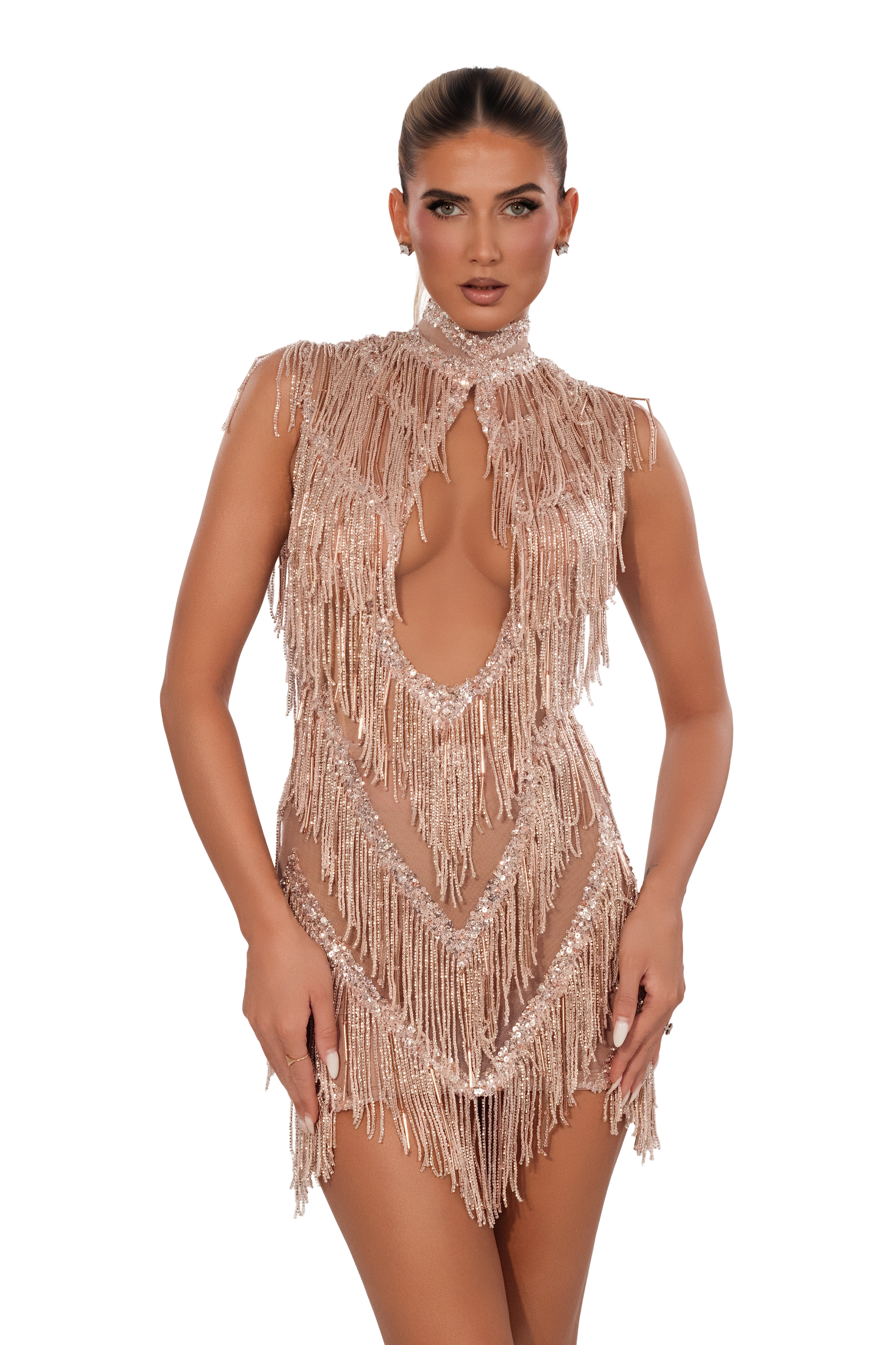 DECORATION: Machine-embroidered embellishments with linear beading fringes