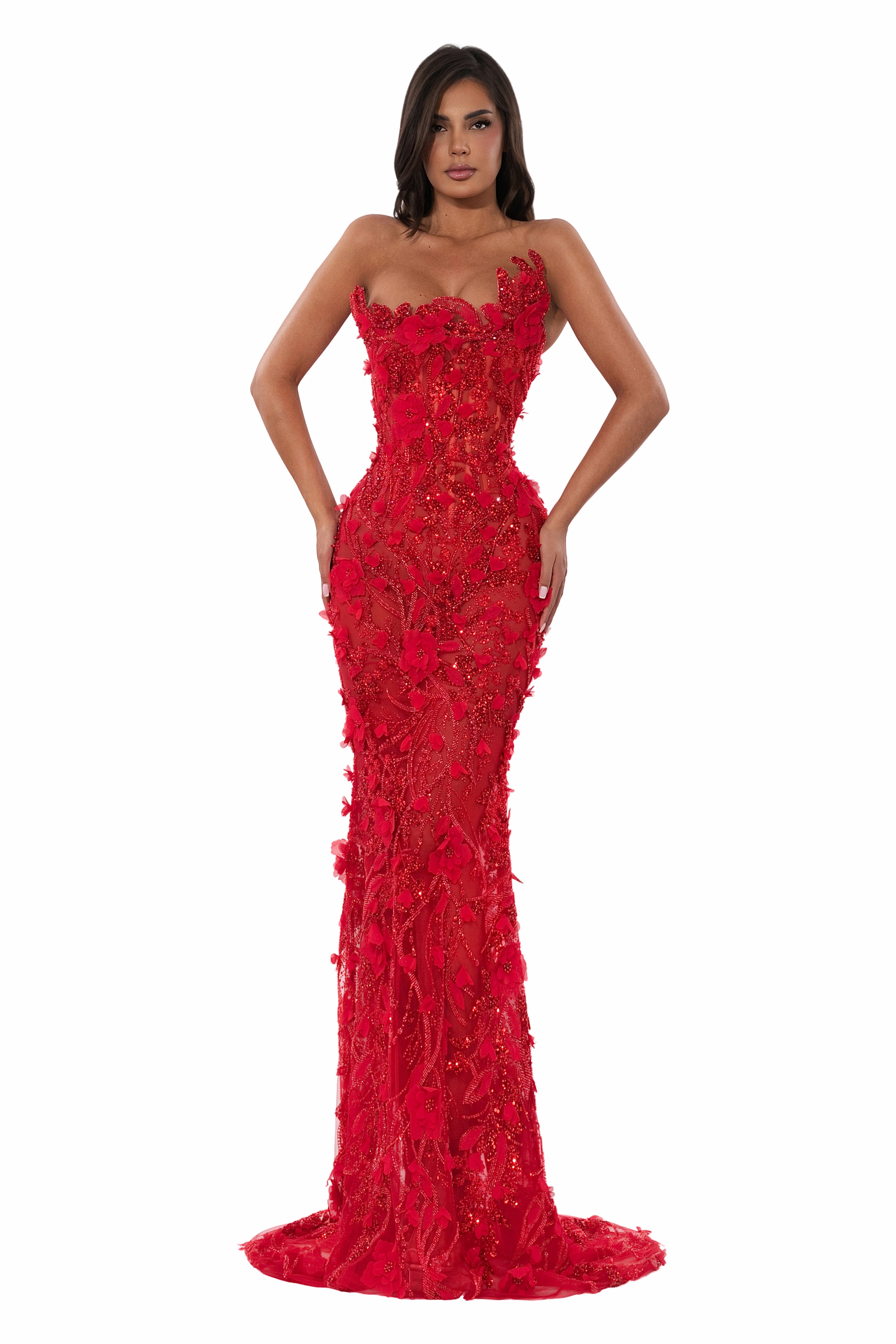 The model’s height: 5'7/170cm, bust: 32'/81cm, waist: 24'4"/62cm, hips: 35'8"/91cm