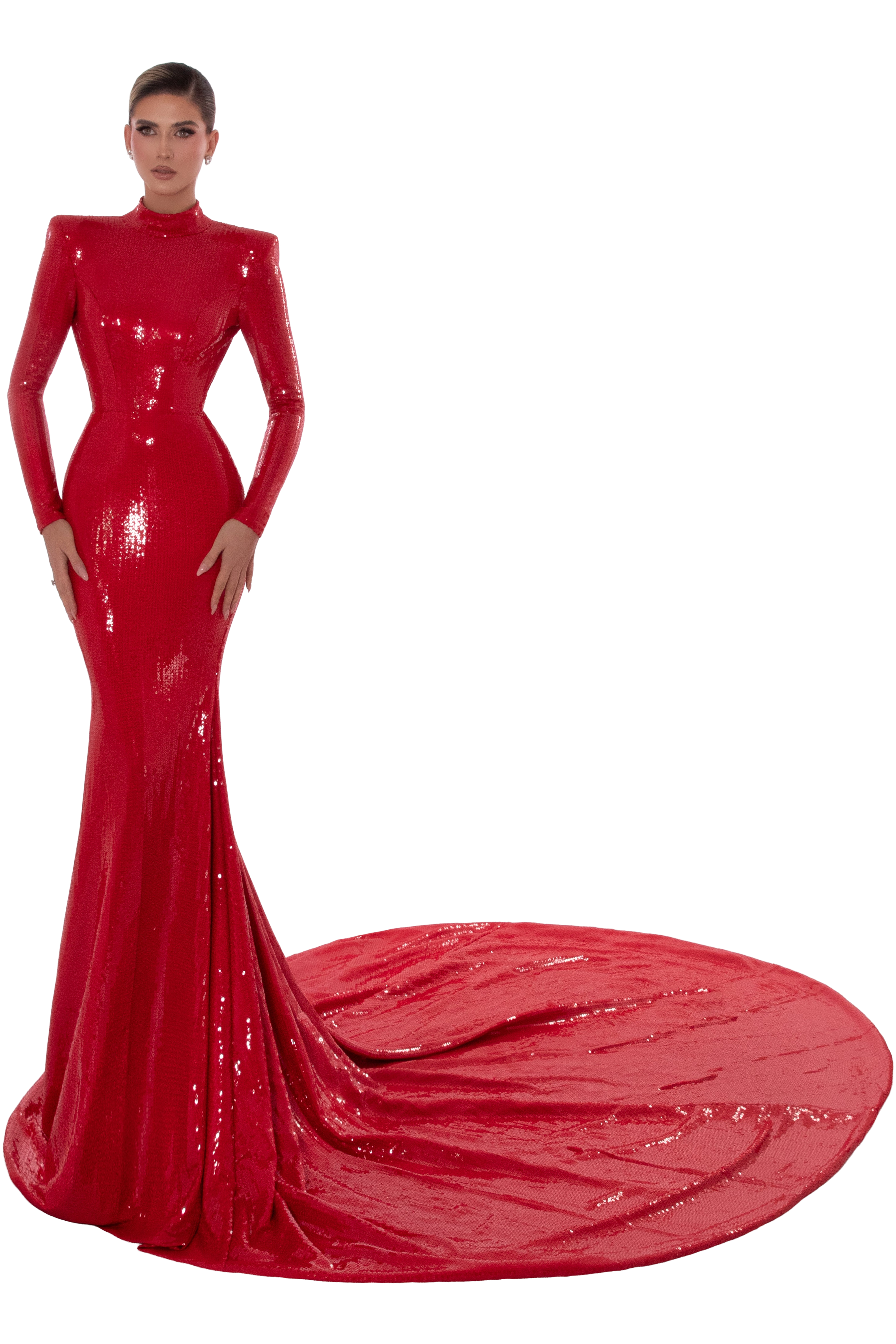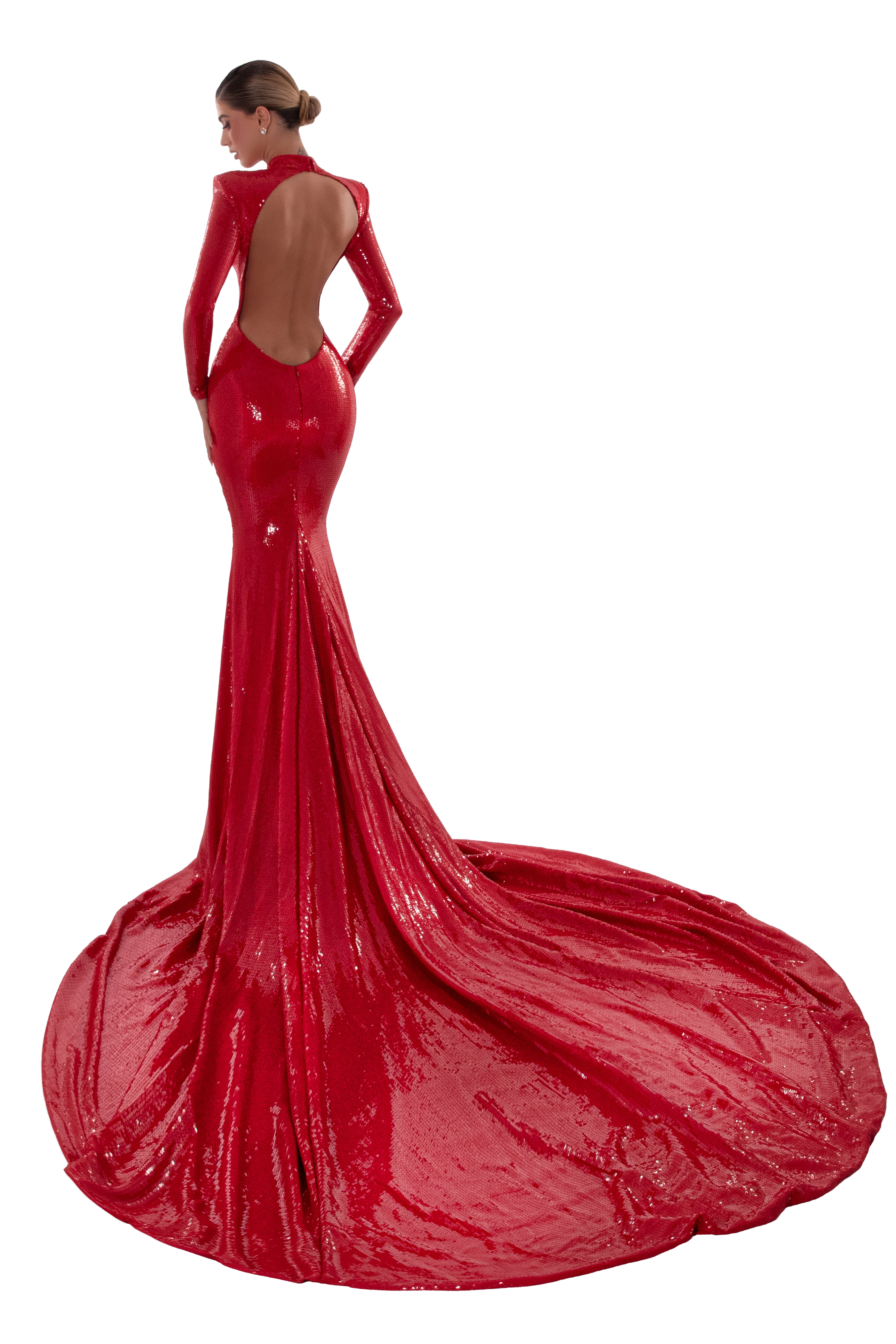 Long SleevesHalf-NeckBackless DesignLong TailConcealed Back ZipperColor :Red