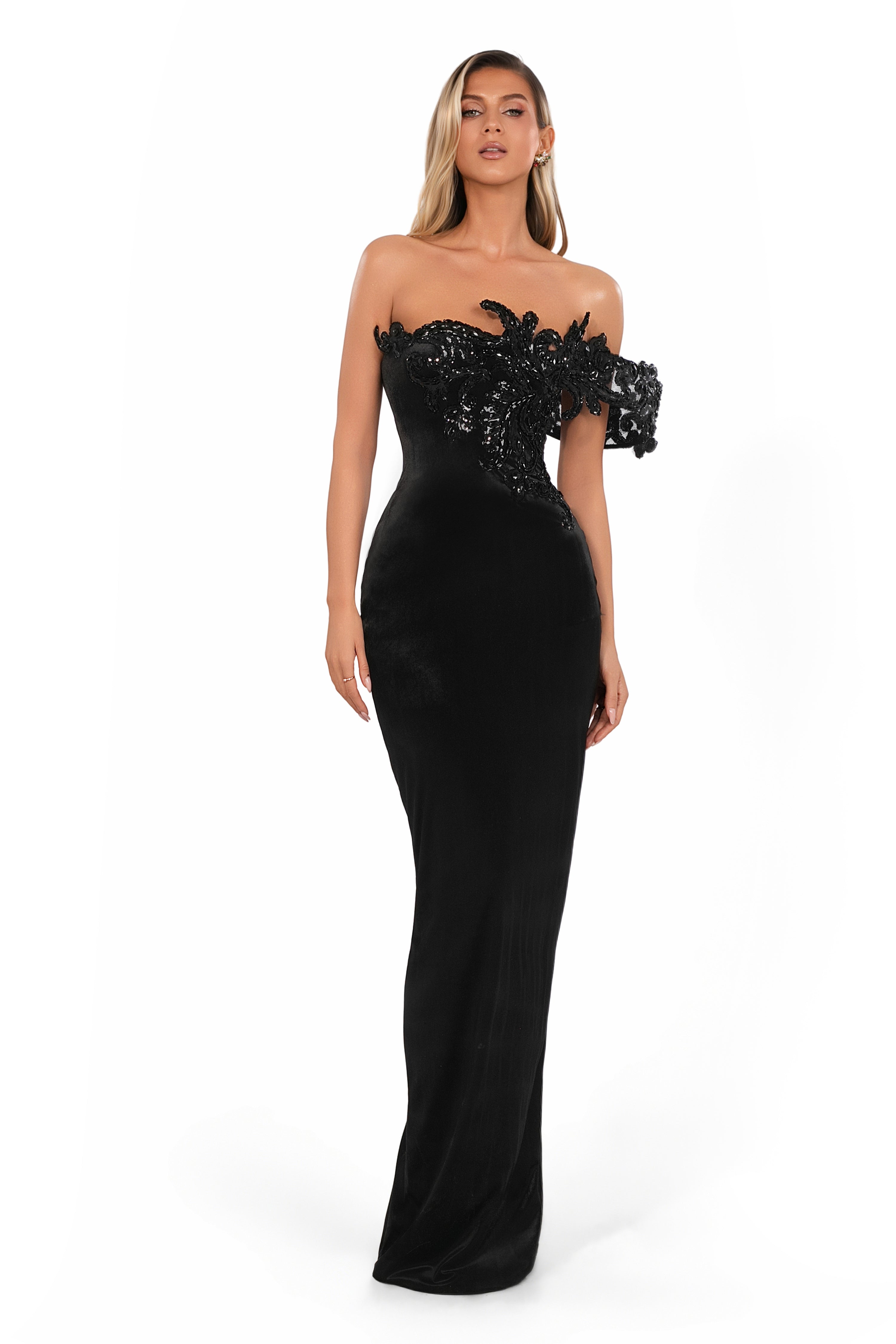 Sculpted velvet body-hugging fit